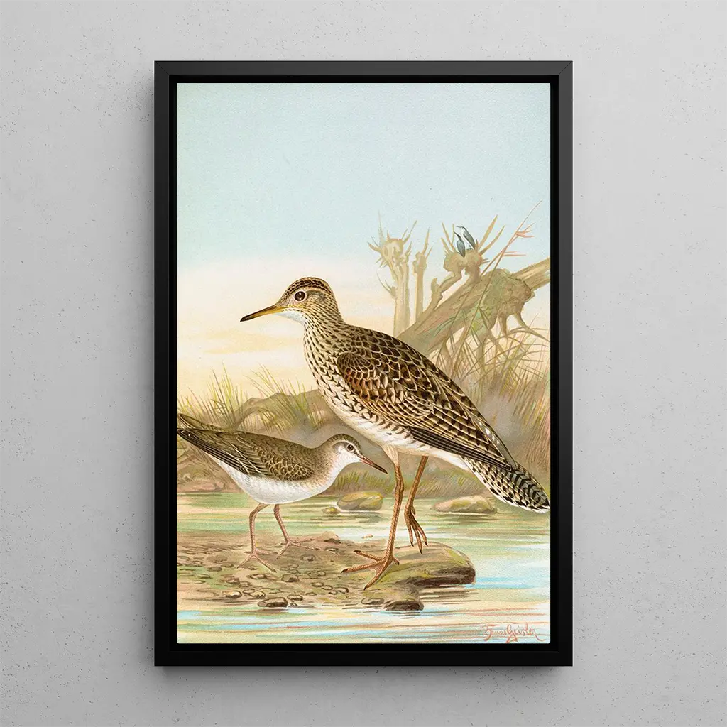 Bartramia longicauda Tringoides macularius : une harmonie de couleurs naturelles La reproduction de Bartramia longicauda Tringoides macularius évoque une scène vibrante de la nature, où les nuances de vert et de bleu se mêlent harmonieusement. La technique de l’aquarelle utilisée par l’artiste permet de capturer la légèreté des plumages et la délicatesse des formes. Chaque détail, des plumes aux reflets sur l’eau, contribue à créer une atmosphère apaisante et contemplative. Ce tableau invite à une immersion dans un monde où la beauté de la faune est mise en avant, rendant hommage à la richesse de la biodiversité. Johann Friedrich Naumann : un pionnier de l’ornithologie artistique Johann Friedrich Naumann, naturaliste et artiste du XIXe siècle, a su allier science et art dans ses œuvres. Influencé par les découvertes de son époque, il a consacré sa carrière à l’étude des oiseaux, devenant une figure emblématique de l’ornithologie. Ses illustrations, à la fois précises et esthétiques, témoignent de son engagement envers la nature et sa volonté de sensibiliser le public à la protection des espèces. La période romantique, durant laquelle il a évolué, a également nourri son style, mêlant observation minutieuse et expression artistique. Une acquisition décorative aux multiples atouts La reproduction de Bartramia longicauda Tringoides macularius constitue un choix décoratif idéal pour embellir un salon, un bureau ou une chambre. Sa qualité d’impression et sa fidélité aux couleurs originales en font une pièce d’art captivante qui attire le regard. En intégrant ce tableau dans votre intérieur, vous apportez une touche de nature et de sérénité, tout en enrichissant votre décoration. Son attrait esthétique et son message sur la préservation de la faune en font un élément à la fois beau et significatif.