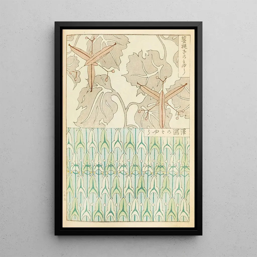 La reproduction de Bijutsukai Pl125 nous plonge dans un univers où la nature et l'art se rencontrent avec une délicatesse rare. Les teintes vibrantes de bleu et d'or se mêlent à des motifs floraux stylisés, créant une atmosphère apaisante et contemplative. La technique de l'estampe, utilisée par Furuya Korin, permet de capturer la légèreté des fleurs tout en offrant une profondeur visuelle grâce à des superpositions de couleurs. Chaque détail est soigneusement travaillé, invitant le spectateur à s'immerger dans cette œuvre poétique, où chaque coup de pinceau semble murmurer les secrets de la nature.