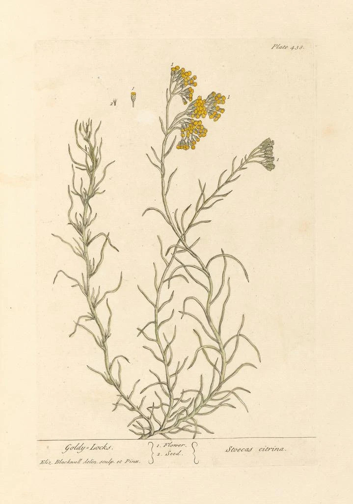 Elizabeth Blackwell, active au XVIIIe siècle, est reconnue pour son apport unique à l'art botanique. Née en 1707, elle a su allier science et art, créant des illustrations qui sont à la fois précises et esthétiques. Son travail s'inscrit dans une période où l'intérêt pour la botanique et les sciences naturelles était en plein essor, notamment en Europe. Blackwell a été l'une des premières femmes à se faire un nom dans ce domaine, défiant les conventions de son époque. Son œuvre, dont Boucles d'or est un exemple emblématique, témoigne de son talent et de sa passion pour la nature, tout en contribuant à la documentation des espèces florales.