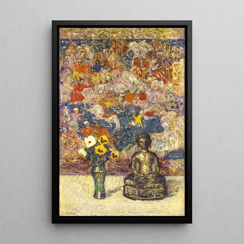 Bouddha en bronze : une sculpture empreinte de sérénité La reproduction du Bouddha en bronze, œuvre emblématique, évoque une atmosphère de paix et de méditation. La finesse des détails, des traits du visage aux plis de la robe, témoigne d'un savoir-faire exceptionnel. Les nuances de bronze, patinées par le temps, ajoutent une profondeur visuelle qui invite à la contemplation. Cette sculpture, à la fois majestueuse et apaisante, semble capturer l'essence même de la sagesse bouddhiste, offrant un refuge spirituel à ceux qui l'observent. L'éclat doux du métal, associé à une pose sereine, crée une ambiance propice à la réflexion et à l'harmonie intérieure. Henry Golden Dearth : un maître de la sculpture religieuse Henry Golden Dearth, sculpteur américain du début du XXe siècle, a su marier tradition et innovation dans ses œuvres. Influencé par l'art asiatique et les philosophies orientales, il a consacré sa carrière à la création de sculptures qui célèbrent la spiritualité. Son style, à la fois réaliste et stylisé, reflète une quête de transcendance, cherchant à représenter des figures sacrées avec une profondeur émotionnelle. Le Bouddha en bronze est l'un de ses chefs-d'œuvre, illustrant son engagement envers l'art sacré et son désir de partager des messages de paix et de sagesse à travers ses créations. Une acquisition décorative aux multiples atouts La reproduction du Bouddha en bronze est une pièce décorative idéale pour divers espaces, qu'il s'agisse d'un salon, d'un bureau ou d'une chambre. Sa présence imposante et sereine apporte une touche d'élégance et de spiritualité à votre intérieur. Fabriquée avec soin, cette toile respecte les détails et la qualité de l'œuvre originale, garantissant une fidélité exceptionnelle. Son attrait esthétique, allié à ses connotations spirituelles, en fait un choix parfait pour ceux qui cherchent à enrichir leur décor tout en cultivant une atmosphère de calme et de réflexion.