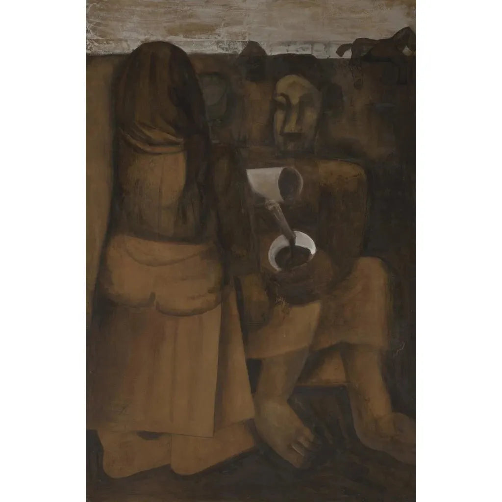 Dans "Buveurs de café", Constant Permeke dépeint une atmosphère intimiste où des figures humaines se retrouvent autour d'une table, plongées dans leurs pensées. Les couleurs terreuses et les nuances sombres dominent la toile, créant une ambiance à la fois chaleureuse et mélancolique. La technique de l'artiste, qui mêle le réalisme à une touche d'expressionnisme, donne vie à ces personnages, révélant leurs émotions et leur solitude. Les formes stylisées et les contours flous ajoutent une dimension presque onirique à cette scène quotidienne, invitant le spectateur à s'interroger sur la vie intérieure de ces buveurs.