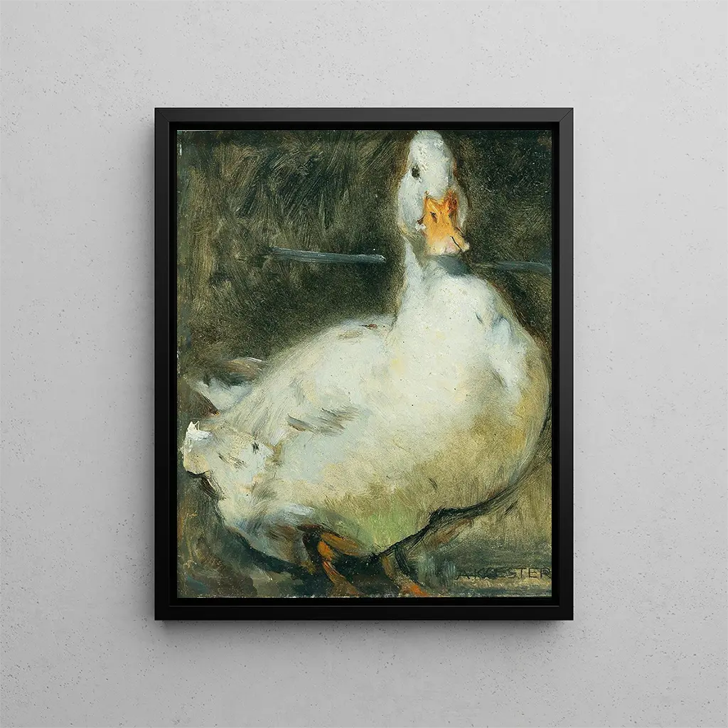 Le style d'Alexander Koester se caractérise par une attention minutieuse aux détails et une palette de couleurs qui évoque la douceur de la nature. Dans "Canard", les nuances de vert et de bleu se mêlent pour créer un environnement aquatique apaisant, tandis que le plumage du canard scintille sous la lumière, révélant des reflets chatoyants. L'artiste excelle dans la représentation des textures, rendant le plumage du canard incroyablement réaliste. Chaque plume semble avoir été peinte avec soin, témoignant de l'habileté technique de Koester. La composition est équilibrée, avec le canard occupant une place centrale qui attire immédiatement le regard. Ce tableau ne se contente pas de représenter un animal ; il évoque une atmosphère de tranquillité et de beauté naturelle, faisant de cette œuvre une véritable ode à la faune.