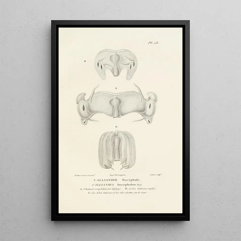 Centurie zoologique Pl28 : un voyage au cœur de la biodiversité La reproduction de la Centurie zoologique Pl28 nous plonge dans un monde fascinant où la nature se dévoile avec une précision remarquable. Les couleurs vibrantes et les détails minutieux des espèces animales capturées sur cette toile témoignent du talent exceptionnel de l’artiste. Chaque élément est soigneusement agencé, créant une atmosphère à la fois éducative et poétique. Les nuances délicates et les ombres subtiles insufflent une vie nouvelle à ces créatures, invitant le spectateur à une contemplation attentive et émerveillée. René Primevère Lesson : un pionnier de l’illustration zoologique René Primevère Lesson, naturaliste et illustrateur du XIXe siècle, a joué un rôle crucial dans l’illustration scientifique de la faune. Son œuvre s’inscrit dans une période où la science et l’art se rejoignent pour éduquer le public sur la biodiversité. Influencé par les explorations scientifiques de son temps, Lesson a su allier rigueur scientifique et sensibilité artistique. Ses illustrations, dont la Centurie zoologique, sont devenues des références dans le domaine, témoignant de l’importance de la représentation fidèle des espèces animales. Une acquisition décorative aux multiples atouts Opter pour la reproduction de la Centurie zoologique Pl28, c'est choisir une pièce décorative qui enrichira votre intérieur. Que ce soit dans un salon, un bureau ou une chambre, cette toile apporte une touche d'élégance et d'érudition à votre décoration. Sa qualité d'impression garantit une fidélité aux détails originaux, permettant d'apprécier pleinement la beauté de la nature. Avec son attrait esthétique indéniable, cette œuvre saura captiver vos invités et éveiller leur curiosité sur le monde animal.