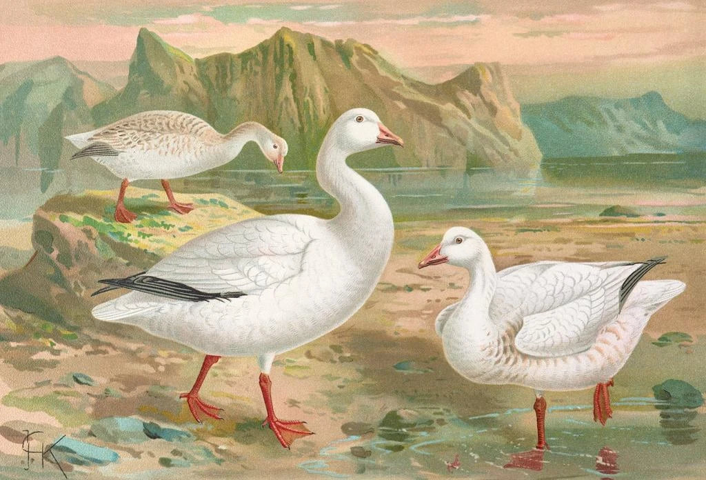 Johann Friedrich Naumann, naturaliste et ornithologue du XIXe siècle, a marqué son époque par ses contributions à la biologie et à l'art. Influencé par les découvertes scientifiques de son temps, il a su allier rigueur scientifique et sensibilité artistique. Ses œuvres, souvent inspirées par la faune et la flore, témoignent d'une époque où l'exploration des territoires inconnus était à son apogée. "Chen hyperboréen" s'inscrit dans ce contexte, illustrant non seulement la beauté des paysages nordiques, mais aussi l'importance de la recherche sur les écosystèmes fragiles.