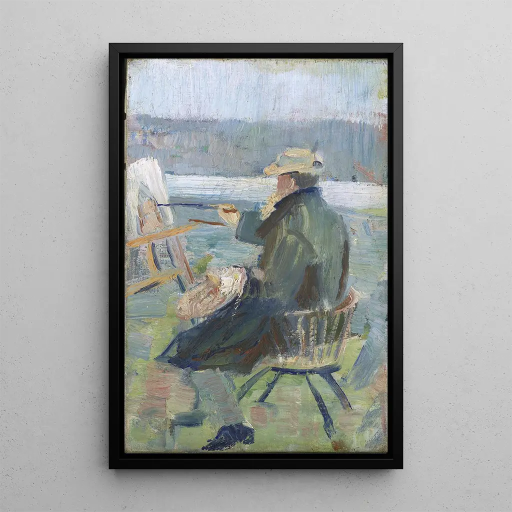 Christian Krohg, né en 1852, est l'une des figures majeures du réalisme en Norvège. Son œuvre est marquée par une profonde empathie pour les sujets qu'il représente, qu'il s'agisse de portraits, de scènes de la vie quotidienne ou de paysages. Influencé par les grands maîtres européens, Krohg a su développer un style unique qui allie précision et émotion. Son engagement social et son intérêt pour les luttes des classes populaires se reflètent dans ses créations. "Christian Krohg à son chevalet" est un témoignage de son dévouement à l'art et à la vie, capturant un moment précieux de son processus créatif.