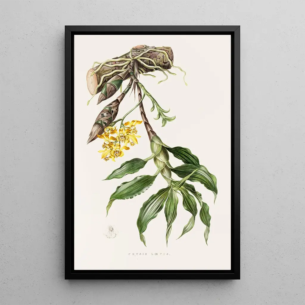 La reproduction de Chysis Loevis nous invite à découvrir une orchidée aux formes délicates et aux couleurs chatoyantes. Avec ses pétales d’un jaune éclatant et ses nuances de rouge, cette œuvre attire immédiatement l’attention. La technique de l’aquarelle, maîtrisée par James Bateman, permet de rendre la transparence et la légèreté des fleurs, créant une atmosphère presque onirique. Chaque détail est soigneusement travaillé, offrant une vision réaliste et poétique de cette plante fascinante. Ce tableau est une véritable ode à la beauté naturelle, capturant l’essence même de la flore tropicale.