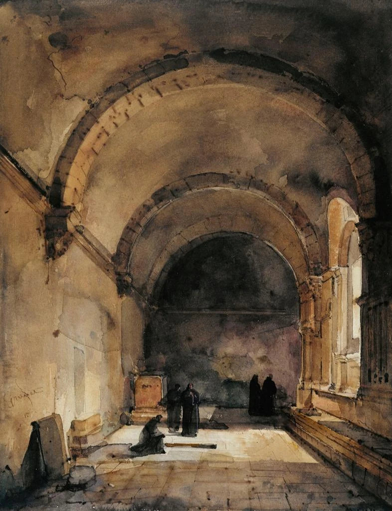 François-Marius Granet, figure emblématique du début du XIXe siècle, a su s’imposer dans le monde de l’art grâce à son approche unique et à sa sensibilité artistique. Formé à l’Académie de Rome, il a été influencé par les grands maîtres de la peinture italienne, mais a également su développer un style propre qui lui est reconnaissable. Granet a souvent exploré des thèmes liés à la vie quotidienne, à la spiritualité et à l’architecture, ce qui lui a permis de capturer des moments de la vie humaine avec une profondeur émotionnelle rare. Son œuvre a eu un impact considérable sur ses contempor