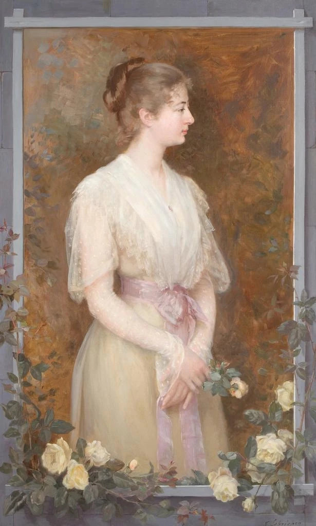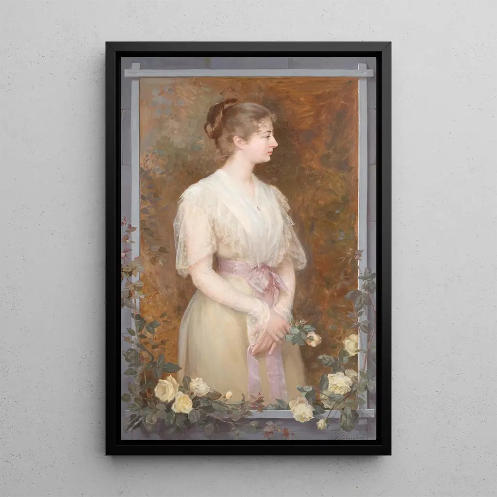 Dans "Cloître", Timoléon Lobrichon nous plonge dans un espace de paix et de recueillement, où l'architecture rencontre la nature. Les arches majestueuses et les jeux d'ombre et de lumière créent une atmosphère mystique, invitant à la méditation. Les couleurs douces et harmonieuses de la toile, allant des beiges chauds aux verts apaisants, renforcent ce sentiment de tranquillité. Lobrichon réussit à capturer l'essence même de cet espace sacré, où le temps semble suspendu, offrant au spectateur une échappatoire vers la contemplation.
