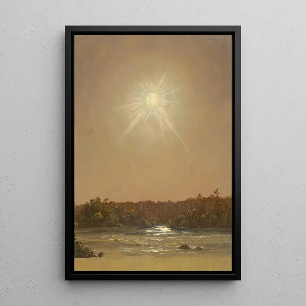 Frederic Edwin Church, figure emblématique du mouvement Hudson River School, a su marier le romantisme et le réalisme dans ses œuvres. Né en 1826, il a été influencé par les voyages en Amérique du Sud et en Europe, ce qui a enrichi son approche artistique. Church a consacré sa carrière à représenter la majesté de la nature, et "Coucher de soleil dans le Maine" en est un exemple parfait. Son style se caractérise par des compositions grandioses et une attention minutieuse aux détails, témoignant de son engagement envers la représentation fidèle des paysages. Cette œuvre, comme beaucoup d'autres, illustre son importance dans l'histoire de l'art américain.