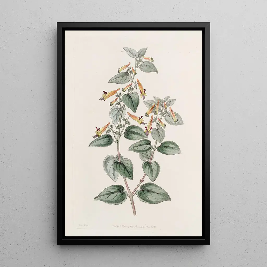 La reproduction de la Cuphea à poils grossiers, réalisée par Sydenham Edwards, évoque une explosion de couleurs et de textures. Les nuances vives de violet et de rose se mêlent harmonieusement, tandis que les détails délicats des feuilles et des fleurs capturent l'œil. La technique de l’aquarelle, avec ses dégradés subtils, confère à cette œuvre une atmosphère légère et aérienne, presque onirique. En contemplant ce tableau, on ressent une invitation à plonger dans la beauté de la nature, à apprécier la minutie des détails qui rendent chaque fleur unique.
