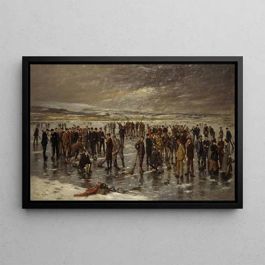 Curling à Carsebreck : une scène de vie rurale vibrante Dans "Curling à Carsebreck", Charles Martin Hardie capture l'essence d'une activité traditionnelle écossaise. La toile, riche en détails, dépeint des figures en mouvement sur la glace, entourées d'un paysage hivernal. Les couleurs froides dominent, avec des nuances de bleu et de blanc, tandis que des touches de rouge et de vert apportent de la chaleur à la scène. La technique de Hardie, mêlant réalisme et impressionnisme, crée une atmosphère vivante et dynamique, invitant le spectateur à ressentir le frisson de la compétition et la camaraderie des participants. Charles Martin Hardie : un maître du paysage et de la vie quotidienne Charles Martin Hardie, actif à la fin du XIXe et au début du XXe siècle, est reconnu pour ses représentations de la vie rurale et de paysages écossais. Influencé par le mouvement préraphaélite et les impressionnistes, il a su intégrer des éléments de lumière et de couleur qui rendent ses œuvres particulièrement vivantes. Sa carrière, marquée par une exploration des thèmes de la nature et des activités humaines, a contribué à mettre en lumière la beauté des traditions écossaises. "Curling à Carsebreck" est un exemple parfait de son habileté à immortaliser des moments de la vie quotidienne avec une touche poétique. Une acquisition décorative aux multiples atouts La reproduction de "Curling à Carsebreck" est un choix idéal pour embellir votre intérieur, que ce soit dans un salon, un bureau ou une chambre. Cette toile, avec son ambiance chaleureuse et son dynamisme, attire le regard et suscite des conversations. Sa qualité de reproduction garantit une fidélité aux détails et aux couleurs d'origine, permettant de profiter de l'œuvre dans toute sa splendeur. En ajoutant ce tableau à votre décoration, vous apportez une touche d'histoire et de culture, tout en créant une atmosphère conviviale et accueillante.