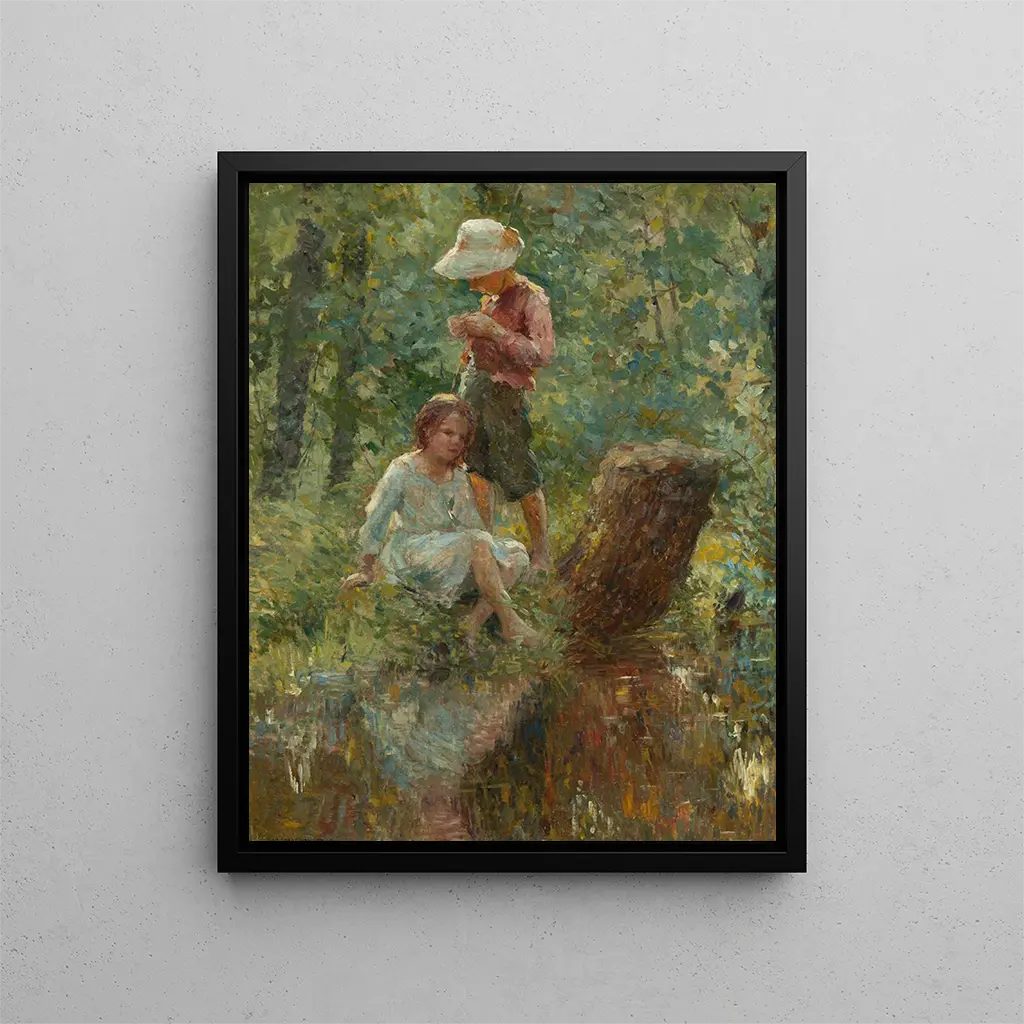 Reproduction Dans les bois - Adam Emory Albright – Introduction captivante La toile "Dans les bois" d'Adam Emory Albright est une œuvre qui transporte le spectateur au cœur d'une nature vibrante et vivante. Ce tableau, emblématique du début du XXe siècle, témoigne de la maîtrise technique et de la sensibilité artistique de l'auteur. En jouant avec la lumière et les ombres, Albright parvient à créer une atmosphère à la fois sereine et mystérieuse, invitant chacun à s'immerger dans ce paysage enchanteur. Les nuances de vert, les éclats de lumière filtrant à travers le feuillage, et les détails minutieux des troncs d'arbres offrent une expérience visuelle saisissante, rendant la reproduction Dans les bois - Adam Emory Albright particulièrement captivante pour les amateurs d'art. Style et singularité de l’œuvre Le style d'Adam Emory Albright se caractérise par un réalisme impressionnant, où chaque élément de la nature est rendu avec une précision presque photographique. Dans "Dans les bois", l'artiste utilise une palette de couleurs riches et variées pour évoquer la densité et la profondeur de la forêt. Les jeux de lumière sont particulièrement remarquables, accentuant le contraste entre les zones d'ombre et les éclats de lumière. Cette approche confère à l'œuvre une dimension presque tactile, permettant au spectateur de ressentir la fraîcheur de l'air et le bruissement des feuilles. La composition est soigneusement orchestrée, chaque élément étant positionné de manière à guider le regard à travers le tableau, créant un sentiment d'immersion dans cet écrin de verdure. Albright parvient ainsi à capturer non seulement la beauté de la nature, mais aussi son essence, sa tranquillité et sa force. L’artiste et son influence Adam Emory Albright, né en 1862, est un peintre américain dont l'œuvre s'inscrit dans le courant du réalisme. Formé à l'École des Beaux-Arts de Paris, il a su intégrer les leçons des grands maîtres européens tout en développant un style personnel profondément ancré dans la nature américaine. Albright a été influencé par le mouvement impressionniste, mais il a su s'en éloigner pour créer des œuvres qui se distinguent par leur clarté et leur souci du détail. Sa passion pour la nature et son engagement envers la représentation fidèle des paysages américains lui ont valu une reconnaissance durable. En exposant des scènes rurales et des paysages boisés, il a su capturer l'esprit de son temps, tout en inspirant de nombreux artistes contemporains. Son héritage artistique perdure, et "Dans les bois" est un exemple parfait de son talent et de sa vision unique. Une décoration murale d’exception signée Artem Legrand La reproduction de "Dans les bois" - Adam Emory Albright est bien plus qu'une simple œuvre d'art ; elle constitue un véritable atout décoratif pour tout intérieur. Signée Artem Legrand, cette pièce saura sublimer un salon, un bureau ou une chambre, apport