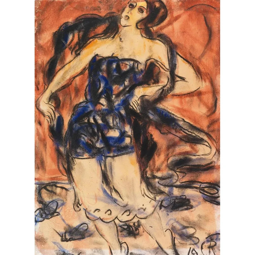 Dans cette œuvre captivante, Christian Rohlfs capture l’essence même de la danse à travers des coups de pinceau audacieux et des couleurs vibrantes. La danseuse, au centre de la toile, semble flotter dans un tourbillon de lumière et de mouvement, ses formes stylisées évoquant une légèreté presque éthérée. Les teintes chaudes et les contrastes dynamiques insufflent une énergie palpable à la composition, créant une atmosphère à la fois joyeuse et mélancolique. Rohlfs, en utilisant une technique d’expressionnisme, parvient à transcender la simple représentation pour offrir une véritable expérience émotionnelle.
