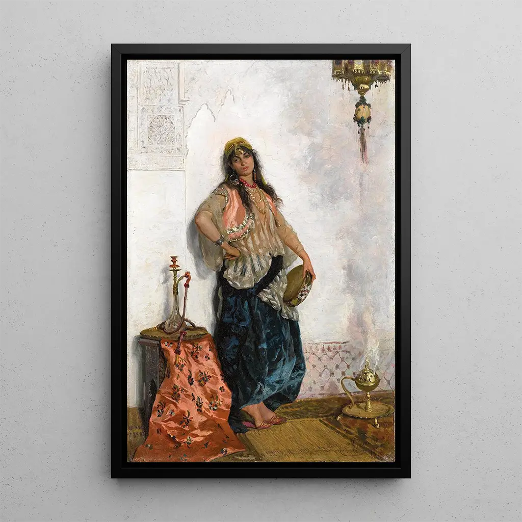 La reproduction de la Danseuse orientale est une pièce décorative qui saura enrichir n'importe quel espace, qu'il s'agisse d'un salon, d'un bureau ou d'une chambre. Sa qualité d'impression et sa fidélité aux couleurs originales garantissent un rendu visuel saisissant. En intégrant ce tableau dans votre décoration, vous apportez une touche d'exotisme et de sophistication à votre intérieur. L'attrait esthétique de cette œuvre, combiné à son histoire riche, en fait un choix idéal pour ceux qui souhaitent ajouter une dimension artistique à leur environnement. Cette toile est plus qu'une simple décoration ; elle est une invitation à la rêverie et à l'évasion.