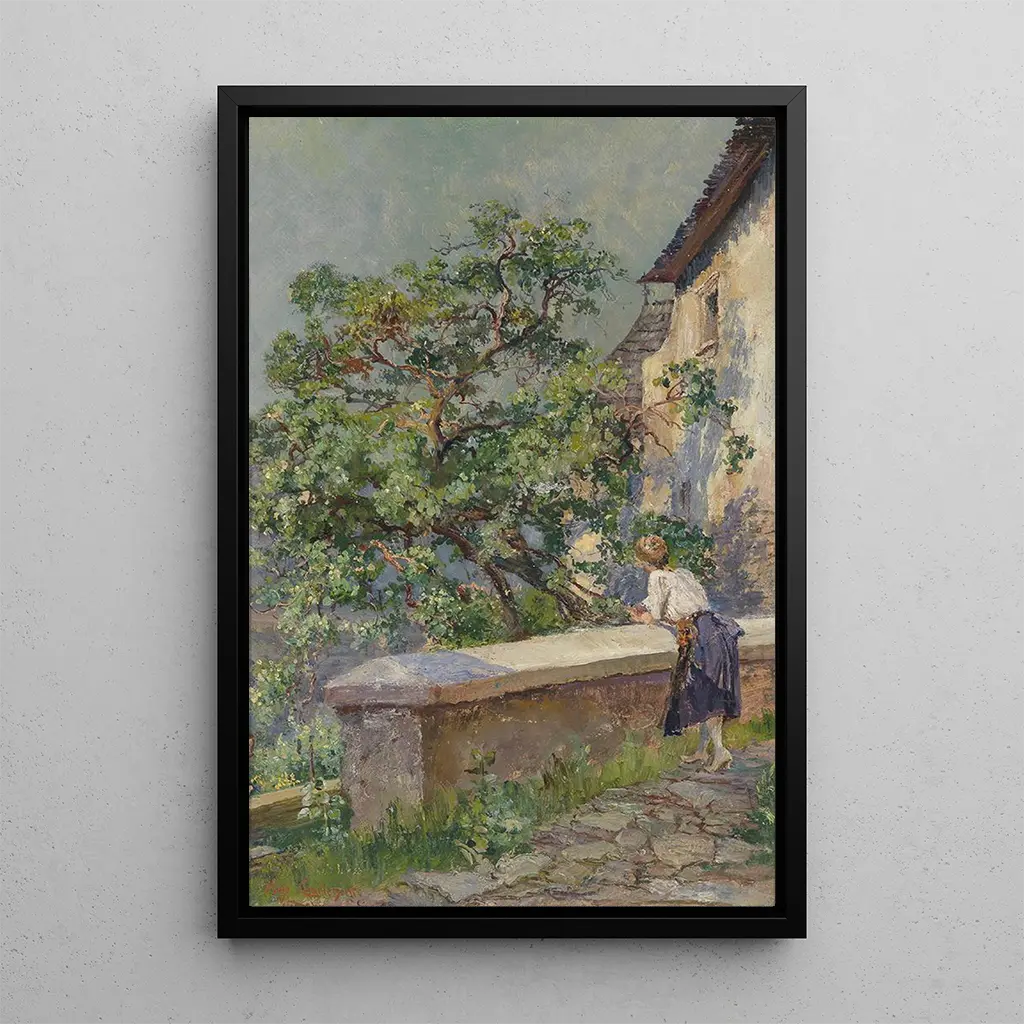 De la Wachau : un voyage pictural au cœur des vignobles "De la Wachau" est une œuvre qui évoque la beauté des paysages viticoles autrichiens, peinte avec une délicatesse remarquable par Hugo Charlemont. Les collines verdoyantes, parsemées de vignes luxuriantes, s'étendent à perte de vue, tandis que le Danube serpente gracieusement en contrebas. Charlemont utilise une palette de couleurs douces, mêlant verts éclatants et bleus apaisants, créant ainsi une atmosphère de sérénité et d'harmonie. La lumière joue un rôle essentiel dans cette composition, illuminant les feuilles et ajoutant une dimension presque magique à ce tableau. Chaque détail, des vignes aux nuages, témoigne de l'amour de l'artiste pour la nature. Hugo Charlemont : un artiste au cœur de l'impressionnisme Hugo Charlemont, actif à la fin du XIXe siècle, est un peintre dont le travail s'inscrit dans le mouvement impressionniste. Sa capacité à capturer la lumière et les couleurs de la nature lui a permis de se démarquer dans le paysage artistique de son temps. Influencé par ses voyages en Europe, Charlemont a su intégrer des éléments de différents styles tout en restant fidèle à son propre regard. "De la Wachau" est un exemple parfait de son talent, illustrant son intérêt pour les paysages ruraux et les scènes de la vie quotidienne. Son œuvre continue d'être célébrée pour sa beauté et son authenticité. Une acquisition décorative aux multiples atouts La reproduction de "De la Wachau" est un choix idéal pour ceux qui souhaitent apporter une touche de nature à leur intérieur. Que ce soit dans un salon, une salle à manger ou un bureau, ce tableau évoque la tranquillité des paysages viticoles et invite à la détente. La qualité de la reproduction assure une fidélité parfaite aux nuances et aux détails de l'œuvre originale, tout en offrant un attrait esthétique indéniable. En intégrant cette toile à votre décoration, vous créez un espace chaleureux et accueillant, où la beauté des paysages naturels s'invite chez vous.