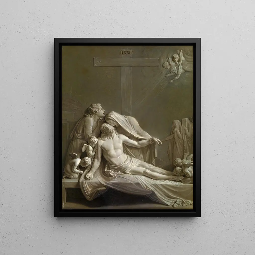 Reproduction Déposition après Antonio Canova - Bernardino Nocchi – Introduction captivante La Déposition après Antonio Canova, œuvre emblématique de Bernardino Nocchi, évoque une profonde émotion à travers son interprétation délicate et respectueuse d'un chef-d'œuvre du néoclassicisme. Cette reproduction, bien que fidèle à l'original, offre une nouvelle perspective sur la scène poignante de la descente de croix. Nocchi, en s'inspirant de Canova, parvient à capturer l'essence même de la souffrance et de la rédemption, transportant le spectateur dans un voyage spirituel. L'œuvre se distingue par sa capacité à émouvoir, à susciter la contemplation et à rappeler l'importance du sacrifice. Style et singularité de l’œuvre Le style de Nocchi se caractérise par une finesse et une précision remarquables. La Déposition, tout en étant une reproduction, se démarque par son interprétation des formes et des volumes. Les figures humaines, sculptées avec une attention méticuleuse, semblent presque vivantes, empreintes d'une expressivité qui transcende le temps. Les drapés, à la fois fluides et dynamiques, témoignent d'une maîtrise technique qui rappelle les plus grands maîtres de la sculpture. La lumière joue un rôle essentiel dans cette œuvre, mettant en valeur les détails et créant une atmosphère à la fois solennelle et intime. Chaque élément, du visage empreint de tristesse aux mains tendues qui soutiennent le corps du Christ, contribue à une composition harmonieuse et émotive. L’artiste et son influence Bernardino Nocchi, sculpteur de renom du XIXe siècle, a su s'imposer comme un artiste majeur dans le paysage artistique de son époque. Formé dans l'ombre des grands maîtres, il a su développer un style propre tout en s'inspirant des œuvres classiques. Son admiration pour Antonio Canova est palpable dans sa Déposition, où il rend hommage à la sensibilité et à la grandeur de l'œuvre originale. Nocchi a su intégrer les principes néoclassiques tout en y apportant sa touche personnelle, marquant ainsi une transition vers des formes plus modernes. Son influence perdure aujourd'hui, tant dans le domaine de la sculpture que dans l'art en général, où son engagement envers la beauté et l'émotion continue d'inspirer de nombreux artistes contemporains. Une décoration murale d’exception signée Artem Legrand La reproduction