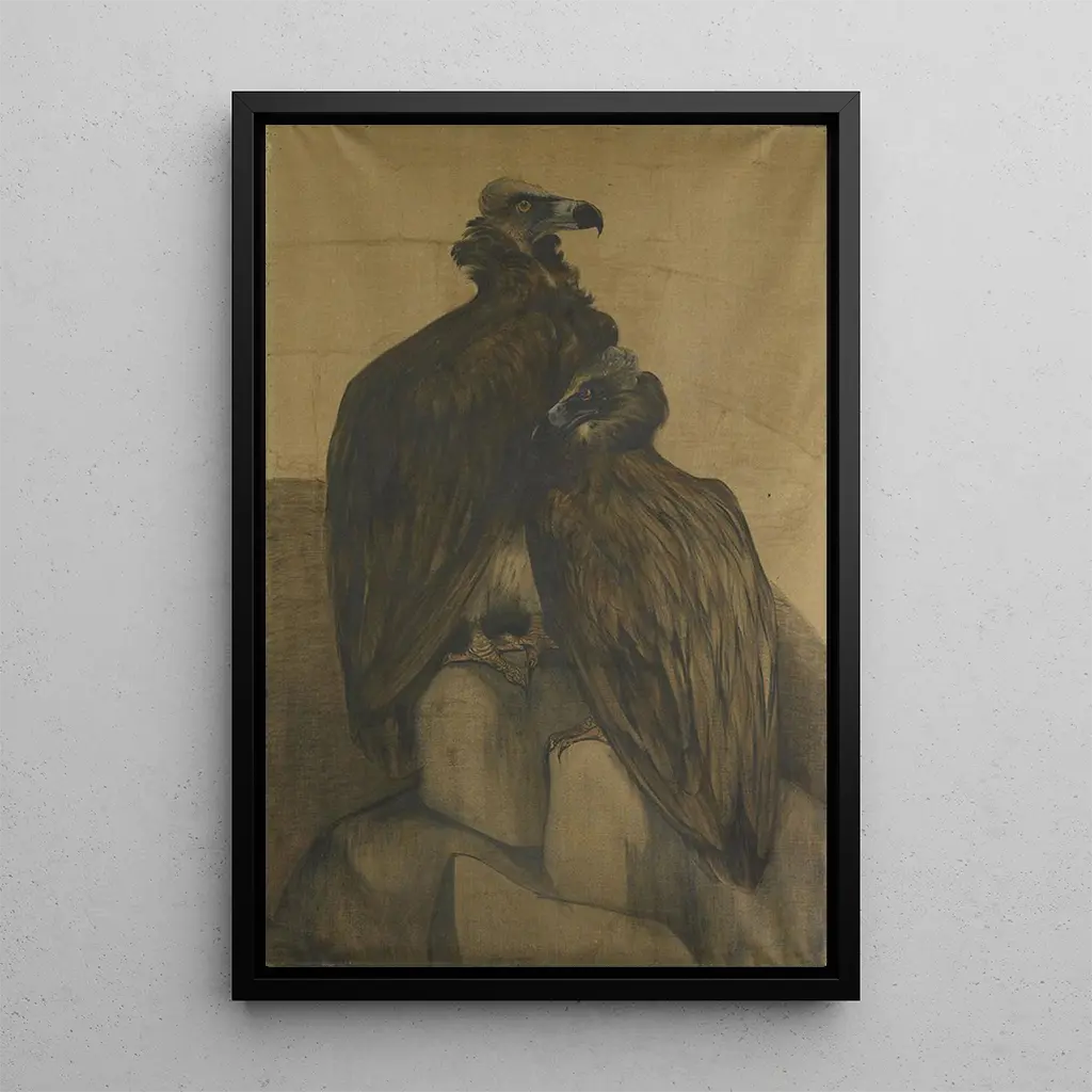 Deux vautours arabes : une danse majestueuse dans les cieux Dans "Deux vautours arabes", Theo van Hoytema capture la grâce et la puissance de ces oiseaux majestueux. La composition met en avant des teintes terreuses et des nuances de bleu qui évoquent un ciel serein. La technique de l’artiste, alliant aquarelle et dessin, crée une atmosphère à la fois réaliste et poétique. Les vautours, avec leurs ailes déployées, semblent flotter dans l’espace, offrant une vision fascinante de la nature. Chaque détail, des plumes aux ombres, est soigneusement travaillé, invitant le spectateur à contempler la beauté de ces créatures souvent mal comprises. Theo van Hoytema : un pionnier de l'observation naturaliste Theo van Hoytema, né en 1863 aux Pays-Bas, est reconnu pour son approche unique de la représentation animale. Influencé par le mouvement naturaliste, il a su allier précision scientifique et sensibilité artistique. Ses œuvres, principalement réalisées entre la fin du XIXe et le début du XXe siècle, témoignent d'une époque où l'art et la science se rejoignaient. Hoytema a souvent exploré la faune et la flore, cherchant à capturer l'essence même de ses sujets. Sa capacité à observer et à retranscrire la nature a fait de lui un artiste incontournable, dont l'héritage perdure à travers ses reproductions. Une acquisition décorative aux multiples atouts La reproduction de "Deux vautours arabes" est une pièce décorative idéale pour enrichir votre intérieur, que ce soit dans un salon, un bureau ou une chambre. Sa qualité d'impression garantit une fidélité exceptionnelle aux détails de l'œuvre originale, tout en apportant une touche d'élégance naturelle à votre décoration. Ce tableau attire le regard et suscite des conversations, grâce à son esthétique captivante et à son sujet fascinant. Offrez-vous cette toile pour créer une ambiance sereine et inspirante, tout en célébrant la beauté de la nature à travers l'art.