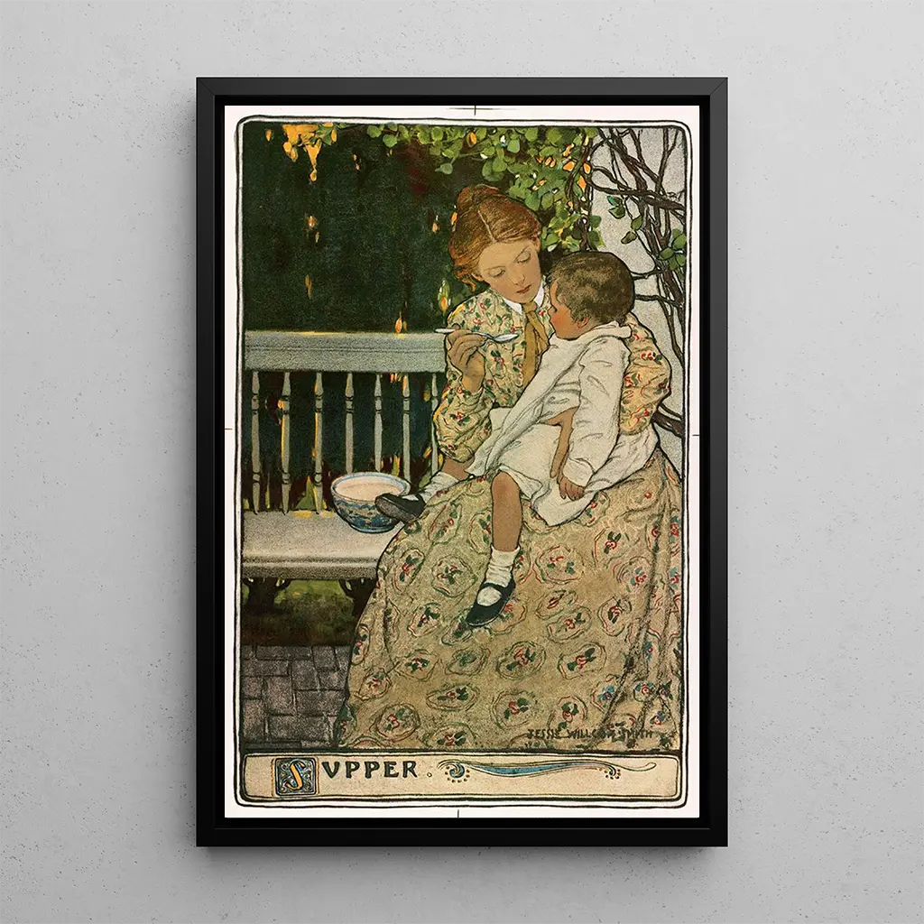 Jessie Willcox Smith, active principalement entre la fin du XIXe siècle et le début du XXe siècle, est reconnue pour sa capacité à capturer les émotions humaines à travers ses illustrations. Élevée dans une époque où l'illustration prenait une place prépondérante dans la culture populaire, elle a été influencée par des artistes comme Howard Pyle et a su développer un style distinctif. Ses œuvres, souvent centrées sur des thèmes familiaux et enfantins, reflètent une sensibilité unique qui continue de toucher le public aujourd'hui. Smith a laissé un héritage durable, faisant d'elle l'une des figures majeures de l'illustration américaine.