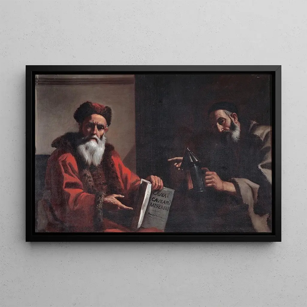 La reproduction de "Diogène et Platon" est une pièce décorative qui enrichira tout espace, qu'il s'agisse d'un salon, d'un bureau ou d'une chambre. Sa qualité de reproduction garantit une fidélité exceptionnelle à l'œuvre originale, permettant aux amateurs d'art de profiter de l'esthétique baroque de Preti dans leur propre intérieur. L'attrait visuel de ce tableau, avec ses couleurs vibrantes et son thème philosophique, suscite des conversations et invite à la réflexion. En intégrant cette toile dans votre décoration, vous apportez non seulement une touche d'élégance, mais aussi une dimension intellectuelle à votre environnement.