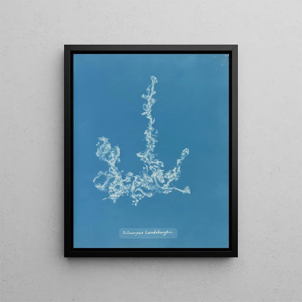 Reproduction Ectocarpus landsburghii - Anna Atkins – Introduction captivante Dans le monde fascinant de l'histoire de l'art, certaines œuvres se démarquent par leur capacité à marier science et esthétique. Parmi celles-ci, la reproduction Ectocarpus landsburghii - Anna Atkins attire l'attention par son approche novatrice. Réalisée au XIXe siècle, cette œuvre est le fruit d'une passion pour la botanique et d'un désir d'immortaliser la beauté des algues marines. Anna Atkins, pionnière de la photographie botanique, a su capturer l'essence de cette algue en utilisant la technique du cyanotype, révélant ainsi un univers visuel où la nature se dévoile dans toute sa splendeur. Cette œuvre, à la croisée des chemins entre art et science, invite le spectateur à explorer un monde souvent méconnu, celui des merveilles maritimes. Style et singularité de l’œuvre La reproduction Ectocarpus landsburghii - Anna Atkins se distingue par son style unique, qui allie précision scientifique et sensibilité artistique. Le cyanotype, technique photographique qui utilise la lumière du soleil pour créer des impressions d'un bleu profond, confère à l'œuvre une atmosphère éthérée. Les formes délicates et les détails minutieux des algues sont mis en valeur par le contraste entre le bleu intense et le blanc éclatant, créant une harmonie visuelle captivante. Chaque pièce est une célébration de la nature, un hommage à la diversité des espèces marines. La simplicité du fond met en avant la complexité des motifs, invitant le spectateur à une contemplation profonde. Cette œuvre ne se contente pas de représenter une algue ; elle évoque une sensation de calme et d'émerveillement, une invitation à plonger dans l'univers aquatique. L’artiste et son influence Anna Atkins, souvent considérée comme la première femme photographe, a marqué son époque par son approche audacieuse et novatrice. Née en 1799, elle a su combiner sa passion pour la botanique et son intérêt pour les nouvelles technologies de son temps. En créant des livres illustrés de plantes à l'aide de la photographie, elle a ouvert la voie à une nouvelle forme d'expression artistique. Son travail a influencé de nombreux artistes et scientifiques, prouvant que l'art peut être un vecteur de connaissance. Atkins a su capturer l'essence même de la nature, transformant des