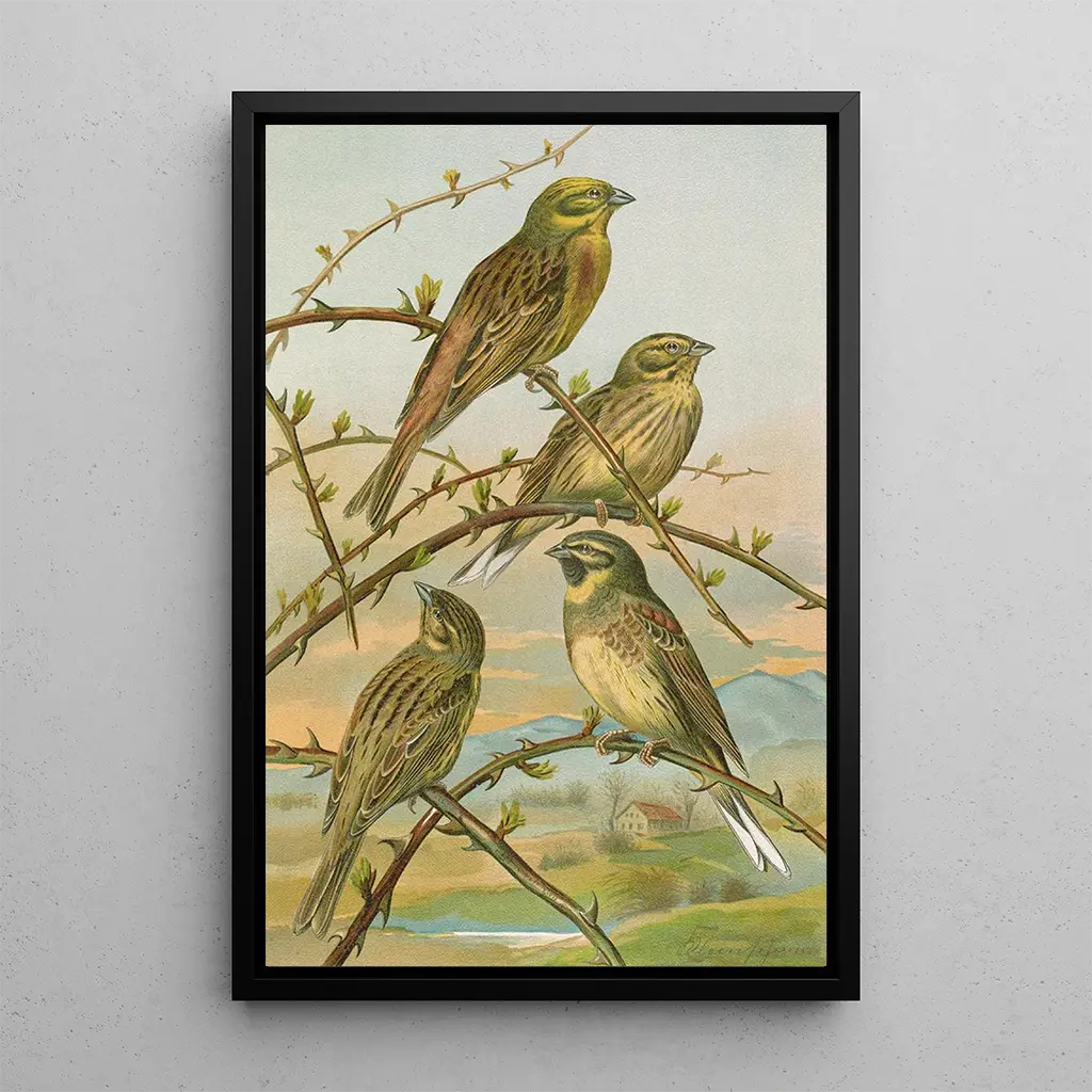 Emberiza citrinella : un chant d'or dans la nature L'œuvre "Emberiza citrinella" de Johann Friedrich Naumann capture la beauté délicate de la nature à travers une représentation minutieuse de ce passereau. Les couleurs vives, allant du jaune éclatant au brun terreux, évoquent une atmosphère printanière où la lumière joue sur les plumes du chanteur. La technique de l'artiste, alliant aquarelle et dessin, permet de saisir la légèreté de l'oiseau, comme s'il était sur le point de s'envoler. Cette toile invite à une contemplation paisible, où chaque détail semble chanter la mélodie de la vie sauvage. Johann Friedrich Naumann : un pionnier de l'ornithologie artistique Johann Friedrich Naumann, naturaliste et artiste du XIXe siècle, a su allier sa passion pour l'ornithologie à son talent artistique. Actif durant une période où l'intérêt pour la nature et la science était en plein essor, il a influencé de nombreux artistes et scientifiques par ses illustrations précises et poétiques. Naumann a voyagé à travers l'Europe, observant et documentant les oiseaux dans leur habitat naturel, ce qui lui a permis de créer des œuvres d'une grande valeur scientifique et esthétique. Son héritage perdure, faisant de lui une figure incontournable dans le domaine de l'art ornithologique. Une acquisition décorative aux multiples atouts La reproduction de "Emberiza citrinella" est une pièce décorative idéale pour apporter une touche de nature à votre intérieur. Que ce soit dans un salon, un bureau ou une chambre, ce tableau attire le regard et suscite l'émerveillement. Sa qualité d'impression et sa fidélité aux couleurs d'origine garantissent une œuvre d'art qui embellira votre espace tout en évoquant la sérénité de la faune. Avec son attrait esthétique, cette toile est un choix parfait pour les amateurs de nature et d'art, enrichissant ainsi votre décoration intérieure de manière élégante et inspirante.