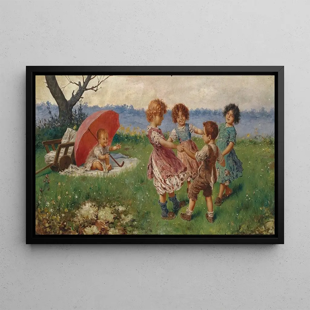 Enfants jouant : une scène de joie et d'innocence Dans la reproduction Enfants jouant de Federico Oliva, la vivacité des couleurs et la légèreté des traits capturent l'essence même de l'enfance. Les enfants, plongés dans leurs jeux, semblent s'épanouir dans un univers où l'innocence règne en maître. La technique de l'artiste, alliant douceur et précision, crée une atmosphère chaleureuse et accueillante. Les nuances de bleu et de vert évoquent la nature, tandis que les éclats de lumière illuminent les visages joyeux des jeunes protagonistes. Cette œuvre invite à la contemplation et à la nostalgie, rappelant les moments simples et précieux de la jeunesse. Federico Oliva : un maître de la représentation enfantine Federico Oliva, artiste du XIXe siècle, est reconnu pour sa capacité à capturer la pureté de l'enfance à travers ses œuvres. Influencé par le romantisme, il s'inscrit dans une période où l'art cherche à exprimer des émotions profondes et authentiques. Ses tableaux, souvent centrés sur des thèmes de la vie quotidienne, reflètent une sensibilité particulière envers les enfants et leur monde. En tant qu'artiste, Oliva a su s'imposer par son style unique, mêlant réalisme et touches poétiques, faisant de lui une figure importante de son époque. Une acquisition décorative aux multiples atouts La reproduction Enfants jouant constitue une pièce décorative idéale pour divers espaces de vie, que ce soit dans un salon, une chambre d'enfant ou un bureau. Sa qualité d'impression et sa fidélité à l'œuvre originale garantissent un attrait esthétique indéniable. En intégrant ce tableau dans votre décoration, vous apportez une touche de joie et de légèreté à votre intérieur. Les couleurs vives et les expressions des enfants créent une ambiance dynamique et chaleureuse, faisant de cette toile un choix parfait pour égayer n'importe quelle pièce.
