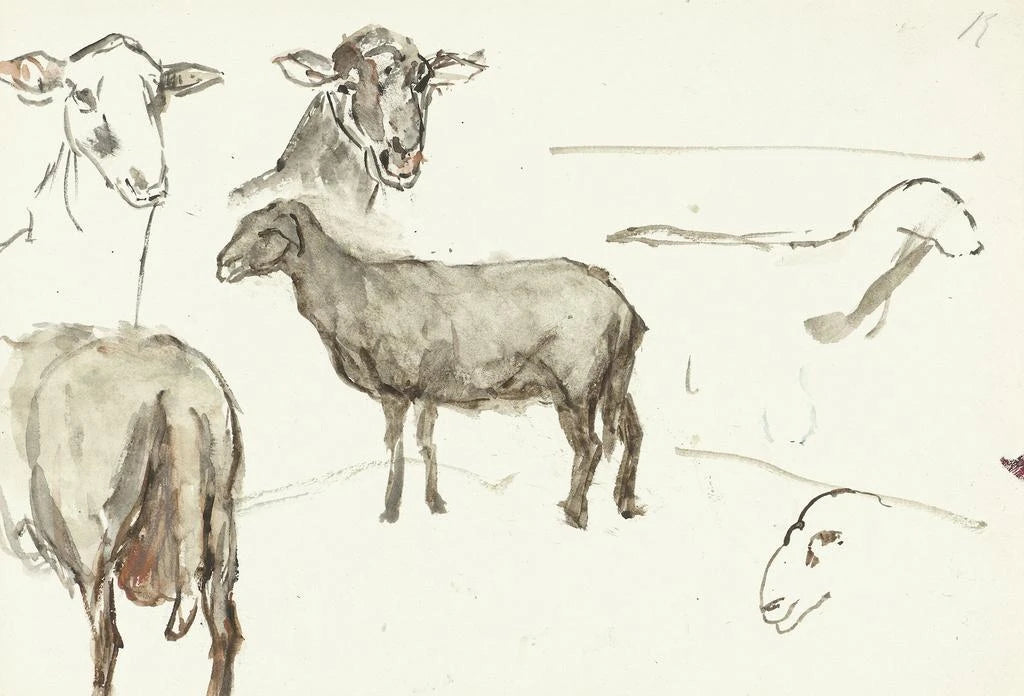Dans cette reproduction d'Esquisses de moutons, Sientje Mesdag van Houten capture la sérénité des paysages ruraux. Les traits délicats et les nuances douces de la palette évoquent une atmosphère paisible, où les moutons semblent se fondre harmonieusement dans leur environnement. La technique de l'artiste, alliant aquarelle et dessin, donne vie à chaque animal, rendant palpable la texture de leur laine. Les ombres légères et les lumières subtiles créent une composition équilibrée, invitant le spectateur à s'immerger dans ce tableau bucolique. Chaque esquisse est une fenêtre ouverte sur un monde tranquille, où la nature et l'animal se rencontrent avec tendresse.