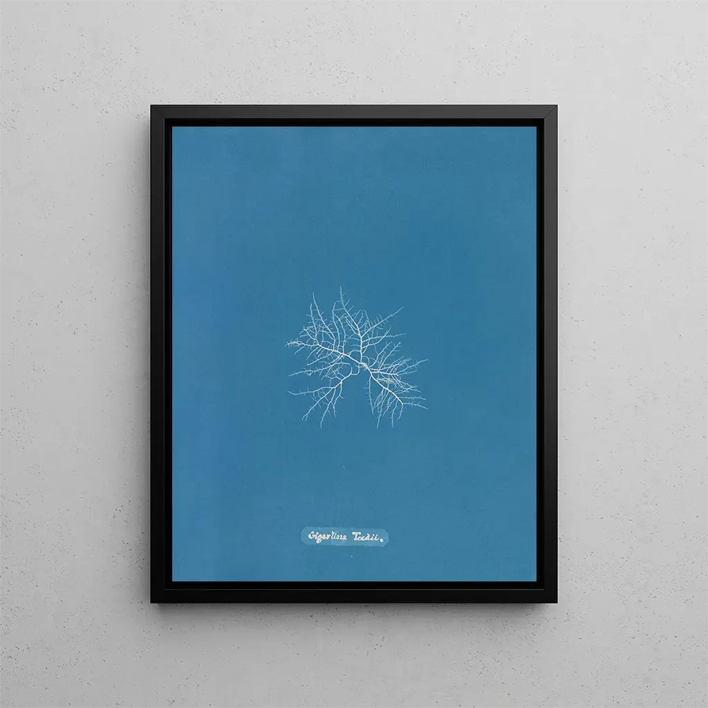 Reproduction C'est à toi - Anna Atkins – Introduction captivante Dans le vaste panorama de l'histoire de l'art, certaines œuvres se distinguent par leur capacité à transcender le temps et à capturer l'essence même de la nature. "C'est à toi - Anna Atkins" s'inscrit dans cette lignée, offrant une immersion poétique dans le monde des algues et des plantes. Anna Atkins, pionnière de la photographie botanique, a su marier science et esthétique, créant ainsi des pièces qui invitent à la contemplation et à la réflexion. Cette œuvre, à la croisée des chemins entre l'art et la science, témoigne d'une époque où l'exploration du monde naturel se faisait à travers des moyens innovants, ouvrant la voie à une nouvelle forme d'expression artistique. Style et singularité de l’œuvre Le style d'Anna Atkins se caractérise par une approche unique de la photographie. Elle utilise le procédé du cyanotype, une technique qui permet d'obtenir des impressions d'un bleu profond et vibrant. Dans "C'est à toi", chaque algue est délicatement mise en valeur, révélant des formes organiques d'une beauté saisissante. La composition, à la fois simple et raffinée, invite le spectateur à s'attarder sur les détails, à apprécier la minutie du travail d'Atkins. Sa capacité à capturer la lumière et à jouer avec les ombres donne à l'œuvre une dimension presque éthérée, où chaque élément semble flotter dans un espace suspendu. Ce dialogue entre la nature et la technique photographique fait de cette œuvre un exemple emblématique de l'art botanique, tout en soulignant l'importance de la nature dans le discours artistique. L’artiste et son influence Anna Atkins, souvent considérée comme la première femme photographe, a ouvert la voie à de nombreuses artistes contemporaines. Son travail ne se limite pas à la simple représentation des plantes ; il interroge également notre rapport à la nature et à la science. En intégrant des éléments botaniques dans son art, Atkins a non seulement documenté la biodiversité de son époque, mais a également contribué à la reconnaissance de la photographie comme un médium artistique à part entière. Son influence perdure aujourd'hui, inspirant des générations d'artistes à explorer les interstices entre l'art, la science et la nature. Dans un monde où le numérique prend le pas sur les techniques traditionnelles, le travail d'Atkins rappelle l'importance de l'observation,