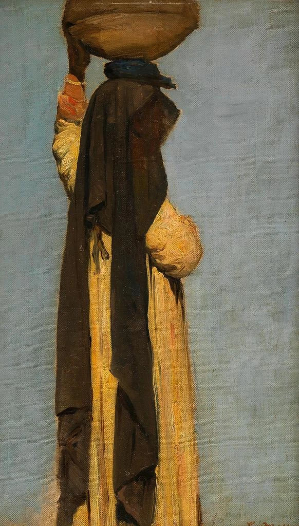 Étude de figure d'une Arabe portant un plateau : une scène de vie saisissante