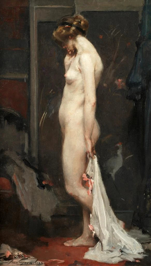Jean Gouweloos, peintre belge du début du XXe siècle, est reconnu pour son approche novatrice du nu académique. Formé dans les écoles d'art traditionnelles, il a su s'éloigner des conventions pour explorer des représentations plus audacieuses et expressives. Influencé par les grands maîtres de la peinture, Gouweloos a intégré des éléments de modernité tout en respectant les fondements classiques. Son travail a marqué une transition dans l'art du nu, le rendant plus accessible et émotionnel. À travers ses œuvres, il a su capturer l'essence de la condition humaine, faisant de lui une figure importante de son époque.