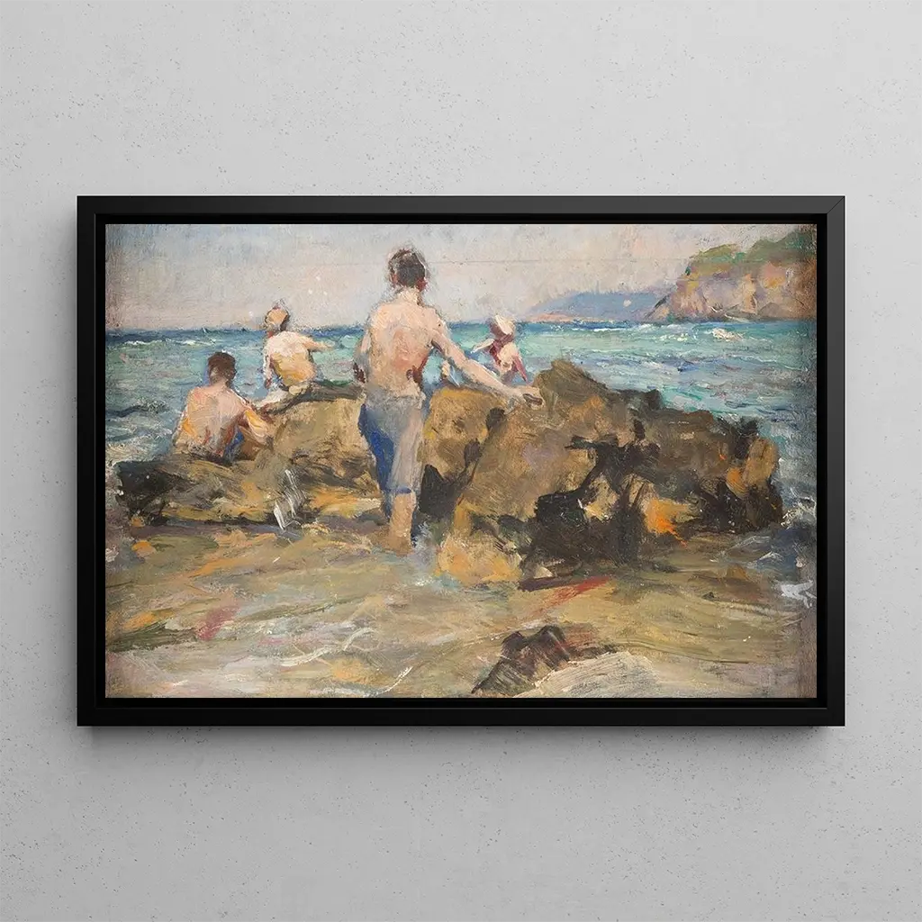 Garçons sur une plage rocheuse - Alphons Hollaender