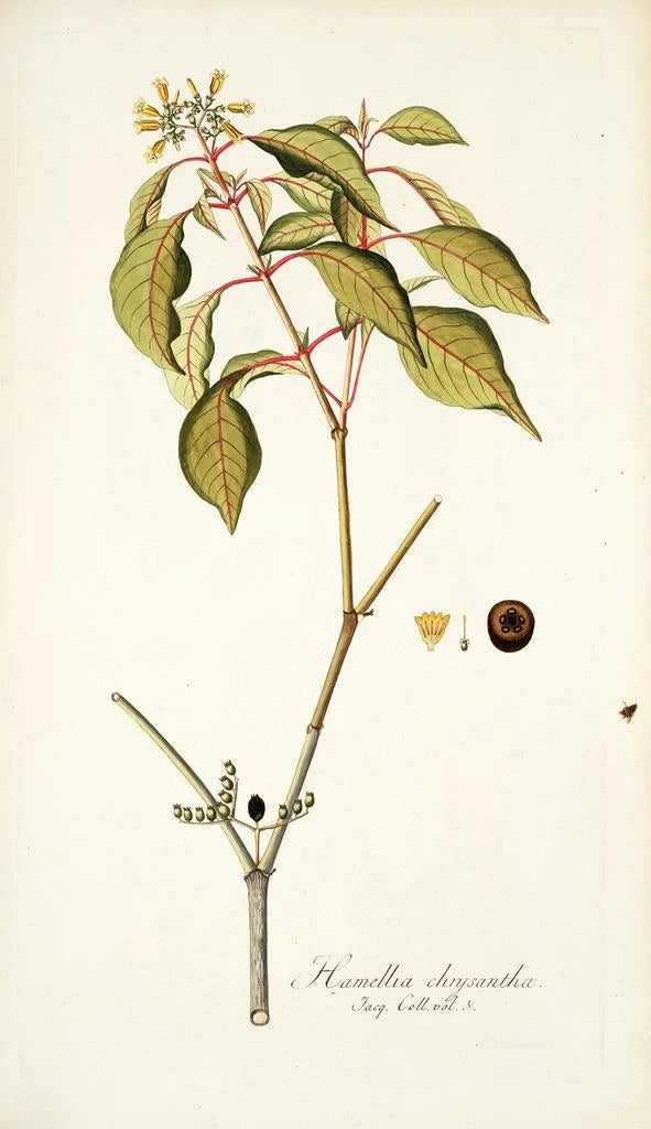 Tableau Hamellia chrysantha - Nikolaus Joseph Freiherr von Jacquin | Reproduction