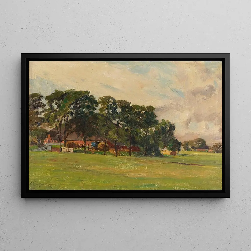 La reproduction Haubarg à Eiderstedt d'Alex Eckener nous transporte dans un paysage rural typique du nord de l'Allemagne. Cette toile dépeint une ferme traditionnelle, le haubarg, caractérisé par son architecture unique et son intégration dans le paysage environnant. Les couleurs terreuses et les nuances de vert évoquent la richesse de la nature, tandis que la lumière douce illumine la scène, créant une atmosphère chaleureuse et accueillante. Eckener réussit à capturer l'essence de la vie rurale, où l'homme et la terre coexistent en harmonie, invitant le spectateur à apprécier la simplicité et la beauté du quotidien.