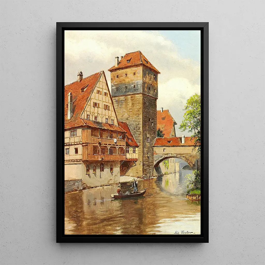 "Henckerstieg à Nuremberg" d'August Fischer est une œuvre qui transporte le spectateur dans les ruelles pittoresques de cette ville médiévale. Les couleurs chaudes et terreuses évoquent l'architecture ancienne, tandis que les détails minutieux des bâtiments et des pavés racontent une histoire riche. La technique de Fischer, mêlant impressionnisme et réalisme, crée une atmosphère vivante, presque palpable, où l'on peut presque entendre les murmures de la ville. Ce tableau est une véritable fenêtre sur le passé, invitant à la découverte de l'histoire.