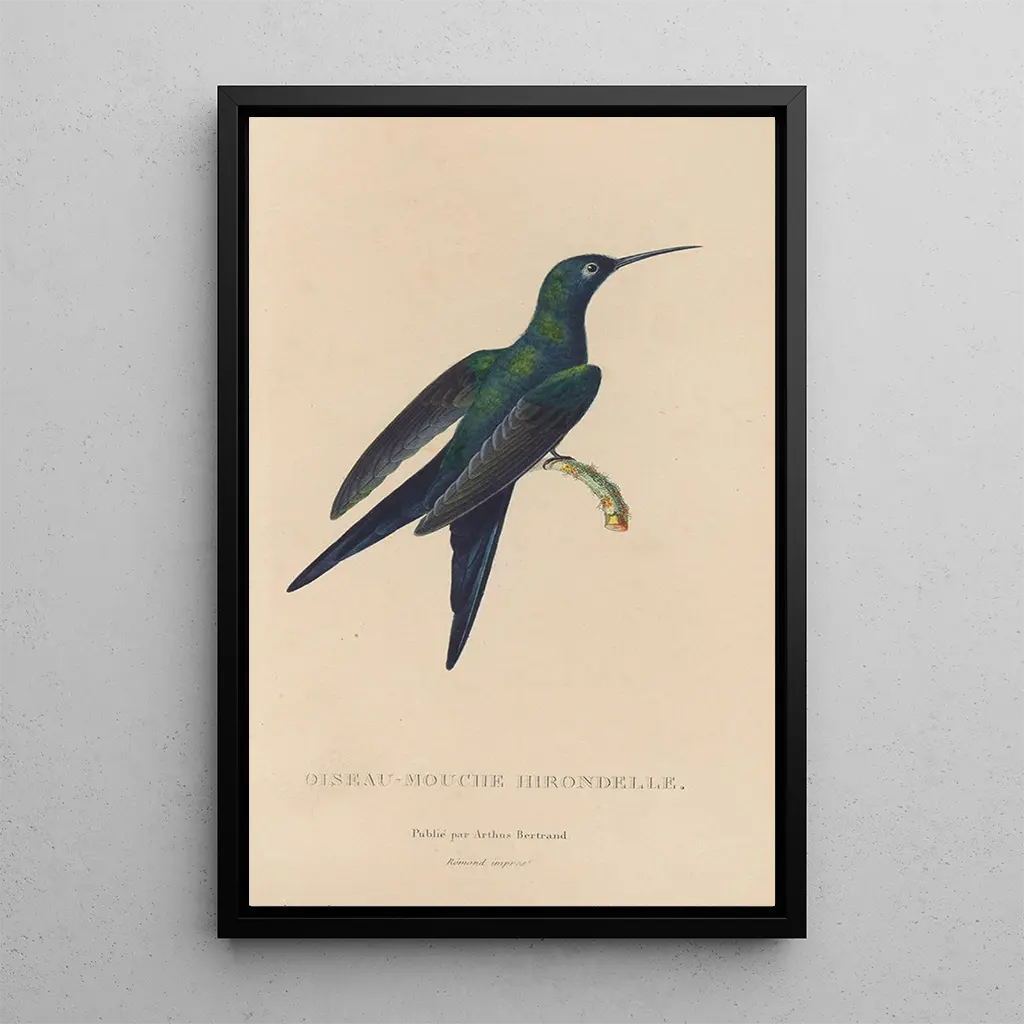 Histoire naturelle des oiseaux-mouches Pl25 : une ode à la légèreté des cieux La reproduction Histoire naturelle des oiseaux-mouches Pl25 est une véritable célébration de la beauté aérienne. Ce tableau, riche en détails, dépeint avec précision des oiseaux-mouches dans leur habitat naturel. Les couleurs vives et chatoyantes, allant des verts éclatants aux roses délicats, évoquent une atmosphère de légèreté et de grâce. La technique de gravure utilisée par l’artiste permet de capturer chaque plume avec une minutie remarquable, offrant une fenêtre sur un monde où la nature et l’art se rencontrent. L'œuvre invite à une contemplation apaisante, où chaque oiseau semble prendre son envol, emportant avec lui les préoccupations du quotidien. René Primevère Lesson : un pionnier de l’ornithologie artistique René Primevère Lesson, naturaliste et illustrateur du XIXe siècle, a marqué son époque par ses contributions à l'ornithologie et à l'art. Influencé par les découvertes scientifiques de son temps, il a su allier rigueur scientifique et sensibilité artistique. Ses œuvres, dont la reproduction Histoire naturelle des oiseaux-mouches Pl25, témoignent de son engagement à représenter la faune avec une précision inégalée. Lesson a voyagé à travers le monde, s'inspirant des paysages exotiques et des espèces rares qu'il a rencontrées. Son travail a non seulement enrichi le domaine de l'illustration naturelle, mais a également permis de sensibiliser le public à la beauté et à la diversité des oiseaux. Une acquisition décorative aux multiples atouts La reproduction Histoire naturelle des oiseaux-mouches Pl25 constitue une pièce décorative idéale pour divers espaces tels que le salon, le bureau ou la chambre. Sa qualité d'impression et sa fidélité aux couleurs originales en font un choix attrayant pour les amateurs d'art et de nature. Accrochée au mur, cette toile apporte une touche d'élégance et de fraîcheur, tout en suscitant des conversations autour de la beauté aviaire. Avec son esthétique raffinée, cette œuvre s'intègre harmonieusement dans tout type de décoration, ajoutant une note de sérénité et d'évasion à votre intérieur.