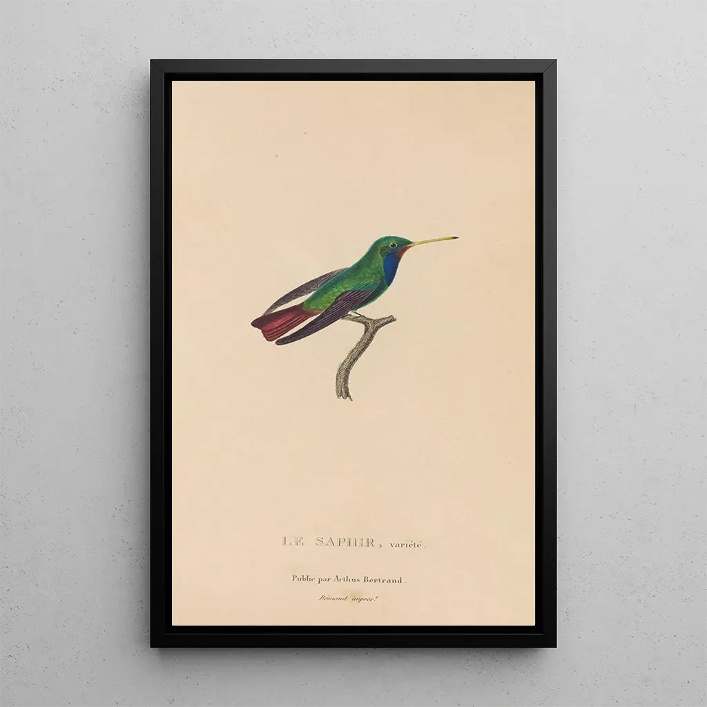 René Primevère Lesson, naturaliste et ornithologue du XIXe siècle, a marqué son époque par ses études approfondies sur les oiseaux. Son travail s’inscrit dans le mouvement du naturalisme, où l’observation minutieuse de la faune et de la flore était primordiale. Influencé par les explorations scientifiques de son temps, il a su allier art et science, offrant des représentations fidèles de la biodiversité. Ses œuvres, dont la reproduction Histoire naturelle des oiseaux-mouches Pl58, témoignent de son engagement à documenter la nature, tout en apportant une touche artistique qui les rend intemporelles.