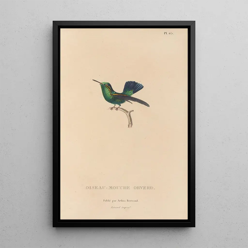 Histoire naturelle des oiseaux-mouches Pl66 : un hommage à la légèreté des ailes La reproduction Histoire naturelle des oiseaux-mouches Pl66 évoque la légèreté et l'élégance de ces oiseaux fascinants. Les couleurs vives et les détails minutieux de cette œuvre capturent l'essence même de ces créatures aériennes, qui semblent flotter dans un monde de beauté. La technique de gravure de René Primevère Lesson permet de rendre chaque plume avec une précision remarquable, créant une atmosphère presque magique. Cette toile invite à l'évasion, à la découverte d'un univers où la nature et l'art se rencontrent pour célébrer la splendeur de la faune aviaire. René Primevère Lesson : un artiste au carrefour de l'art et de la science René Primevère Lesson, naturaliste et illustrateur, a joué un rôle clé dans la documentation des espèces au XIXe siècle. Son travail s'inscrit dans une époque où l'intérêt pour la nature et la science était en plein essor, influencé par les explorations et les découvertes scientifiques. Lesson a su allier rigueur scientifique et sensibilité artistique, offrant une vision unique de la biodiversité. Ses illustrations, dont l'Histoire naturelle des oiseaux-mouches, sont non seulement des œuvres d'art, mais aussi des contributions significatives à l'ornithologie, faisant de lui un acteur majeur dans le domaine de l'illustration naturaliste. Une acquisition décorative aux multiples atouts La reproduction Histoire naturelle des oiseaux-mouches Pl66 est une pièce décorative qui saura enrichir votre intérieur, que ce soit dans un salon, un bureau ou une chambre. Sa qualité d'impression et son attention aux détails en font un choix idéal pour les passionnés d'art et de nature. Avec son esthétique captivante, cette toile apporte une touche de couleur et de vie à votre espace, tout en évoquant la beauté délicate des oiseaux-mouches. En optant pour ce tableau, vous choisissez une œuvre qui non seulement embellit votre décor, mais qui invite également à la réflexion sur la richesse de notre environnement naturel.