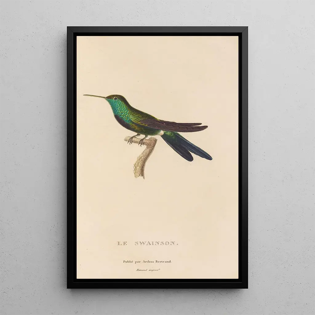 Histoire naturelle des oiseaux-mouches Pl71 : une célébration de la légèreté La reproduction Histoire naturelle des oiseaux-mouches Pl71 offre une vision fascinante de ces créatures délicates. Les couleurs vives et chatoyantes des plumages, allant des verts éclatants aux bleus profonds, capturent l'œil et évoquent une atmosphère de légèreté et de grâce. La technique de gravure utilisée par Lesson permet de rendre chaque détail avec une précision remarquable, des plumes aux formes élancées des oiseaux. Cette toile invite à la contemplation, transportant le spectateur dans un monde où la nature se dévoile dans toute sa splendeur. René Primevère Lesson : un pionnier de l'ornithologie artistique René Primevère Lesson, naturaliste et artiste du XIXe siècle, a joué un rôle clé dans l'étude des oiseaux. Influencé par les découvertes scientifiques de son époque, il a su allier art et science dans ses œuvres. Son travail, qui s'inscrit dans le mouvement du naturalisme, a contribué à une meilleure compréhension des espèces aviaires. Lesson a voyagé à travers le monde, observant et documentant la faune, ce qui lui a permis de créer des illustrations d'une précision inégalée. Son héritage perdure, faisant de lui une figure incontournable dans l'histoire de l'ornithologie. Une acquisition décorative aux multiples atouts La reproduction Histoire naturelle des oiseaux-mouches Pl71 constitue une pièce décorative idéale pour divers espaces, que ce soit dans un salon, un bureau ou une chambre. Sa qualité d'impression et sa fidélité aux détails originaux en font un choix attrayant pour les amateurs d'art et de nature. En intégrant ce tableau dans votre décoration, vous apportez une touche d'élégance et de fraîcheur à votre intérieur. L'attrait esthétique de cette toile saura séduire vos invités et enrichir votre environnement quotidien.