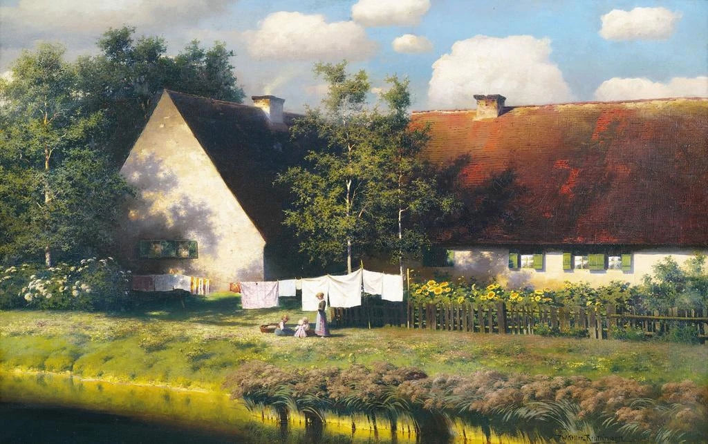 Idylle d'été à la ferme - Paul Wilhelm Keller-Reutlingen
