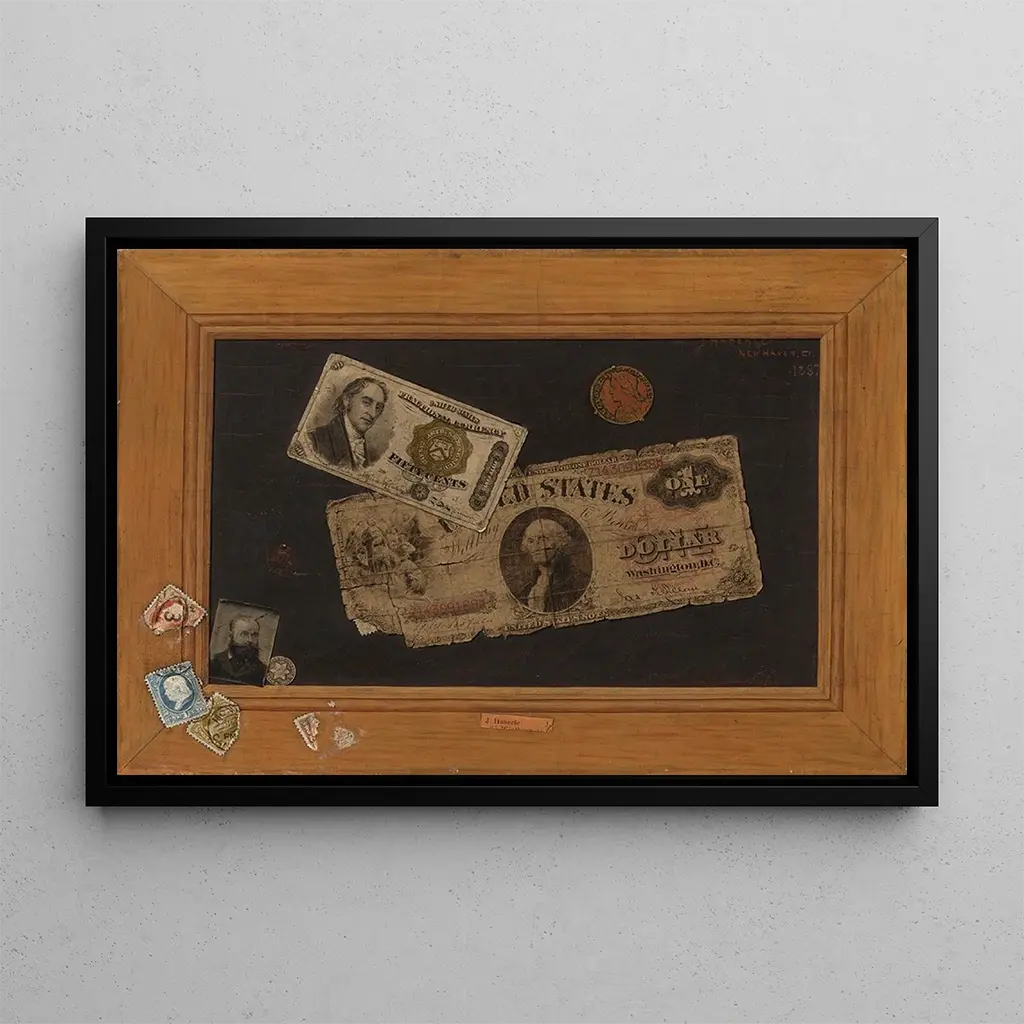 John Haberle, né en 1856, est un artiste américain reconnu pour son talent exceptionnel dans le domaine du trompe-l'œil. Actif à la fin du XIXe siècle, il a su s'imposer dans un contexte artistique où le réalisme et l'impressionnisme commençaient à dominer. Influencé par des maîtres européens, Haberle a développé un style unique qui allie précision technique et sens de l'humour. Ses œuvres, souvent empreintes de satire, interrogent la nature de l'art et la perception humaine. "Imitation" est l'une de ses pièces les plus emblématiques, témoignant de son habileté à manipuler la lumière et l'espace pour créer des illusions visuelles.