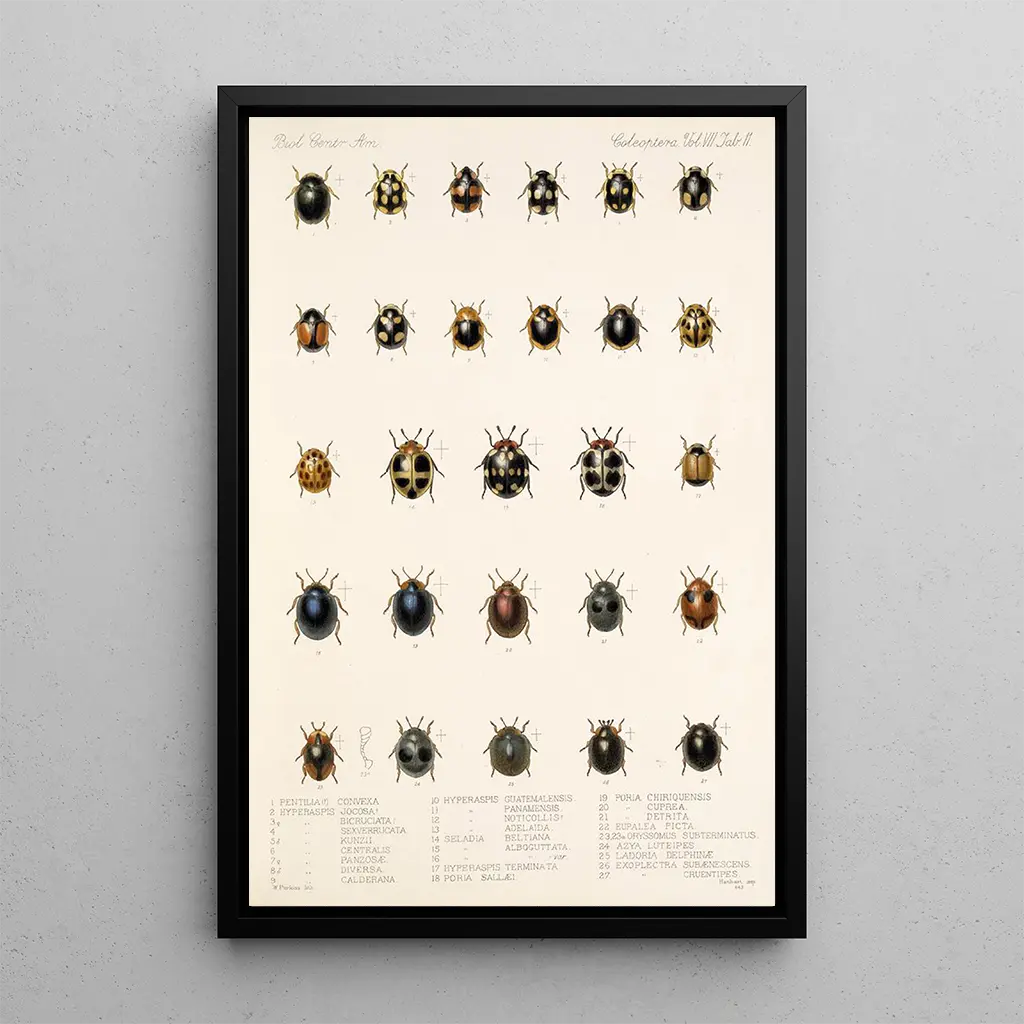Insecta Coleoptera Pl 299 : une ode à la beauté des insectes L'œuvre "Insecta Coleoptera Pl 299" de Frederick DuCane Godman est une illustration fascinante qui capture l'essence des coléoptères avec une précision remarquable. Les couleurs vibrantes et les détails minutieux de chaque insecte révèlent une atmosphère à la fois scientifique et artistique. Godman, en utilisant des techniques de gravure et d'aquarelle, parvient à transmettre la diversité et la complexité de ces créatures. Chaque élément de la composition, des ailes délicates aux textures des corps, invite à une contemplation attentive et émerveillée, faisant de cette reproduction un véritable chef-d'œuvre de l'observation naturaliste. Frederick DuCane Godman : un pionnier de l'entomologie artistique Frederick DuCane Godman, actif au XIXe siècle, est reconnu pour son rôle essentiel dans l'étude et la représentation des insectes. Naturaliste et entomologiste, il a dédié sa vie à la documentation de la biodiversité, influencé par les découvertes de son époque et par des voyages à travers le monde. Sa collaboration avec d'autres scientifiques a permis de produire des œuvres qui allient rigueur scientifique et esthétique. Godman a ainsi contribué à l'essor de l'entomologie, faisant de ses illustrations des références incontournables pour les amateurs et les chercheurs. "Insecta Coleoptera Pl 299" est un exemple emblématique de son héritage, alliant art et science. Une acquisition décorative aux multiples atouts La reproduction de "Insecta Coleoptera Pl 299" constitue un ajout décoratif idéal pour divers espaces, qu'il s'agisse d'un salon, d'un bureau ou d'une chambre. Sa qualité d'impression et sa fidélité aux détails originaux font de cette toile un choix attrayant pour les passionnés de nature et d'art. En intégrant cette œuvre dans votre décoration, vous apportez une touche d'élégance et d'érudition à votre intérieur. L'attrait esthétique de cette reproduction ne manquera pas d'éveiller la curiosité et d'inspirer des conversations autour de la beauté du monde naturel.