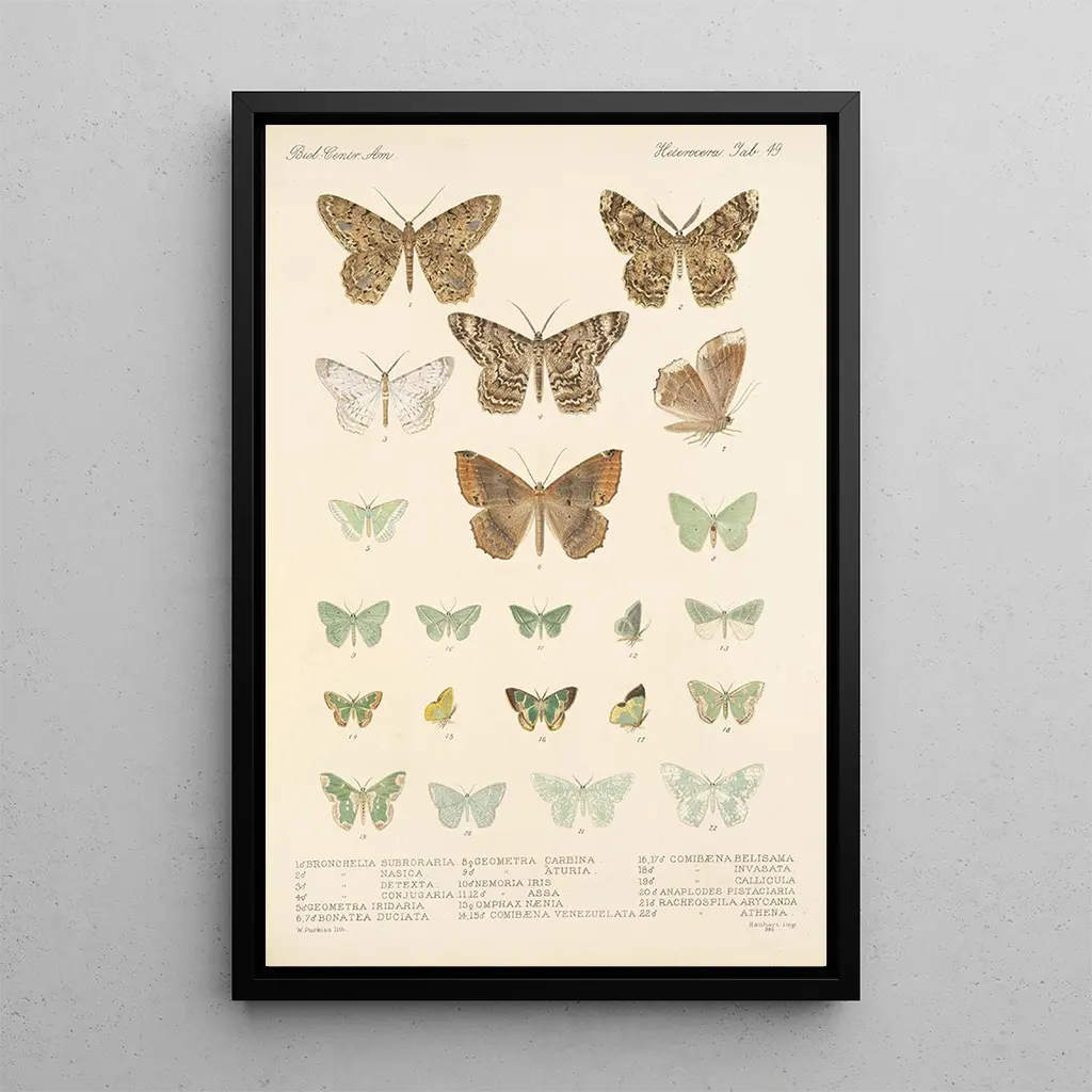 La reproduction Insecta Lepidoptera Heterocera Pl 049 nous invite à découvrir un monde vibrant de couleurs et de formes. Cette illustration, riche en détails, met en lumière la diversité des lépidoptères, capturant leur essence avec une précision remarquable. Les nuances délicates et les motifs complexes des ailes des papillons évoquent une atmosphère de légèreté et de mystère. Chaque élément de cette œuvre est soigneusement agencé, créant une composition harmonieuse qui attire l'œil et stimule l'imagination, tout en célébrant la beauté de la nature.