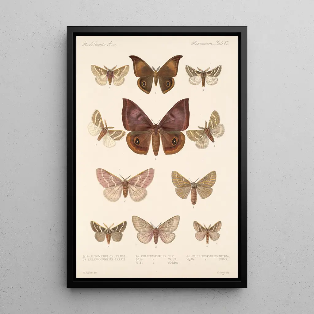 La reproduction de "Insecta Lepidoptera Heterocera Pl 082" est une pièce décorative qui s'intègre parfaitement dans divers environnements, qu'il s'agisse d'un bureau, d'un salon ou d'une chambre. Sa qualité d'impression et sa fidélité aux détails en font un choix idéal pour ceux qui souhaitent ajouter une touche d'élégance à leur intérieur. En choisissant cette toile, vous ne vous contentez pas d'embellir votre espace, mais vous invitez également une part de la nature dans votre quotidien. Ce tableau devient un élément de décoration qui suscite curiosité et admiration, tout en célébrant la beauté des insectes nocturnes.