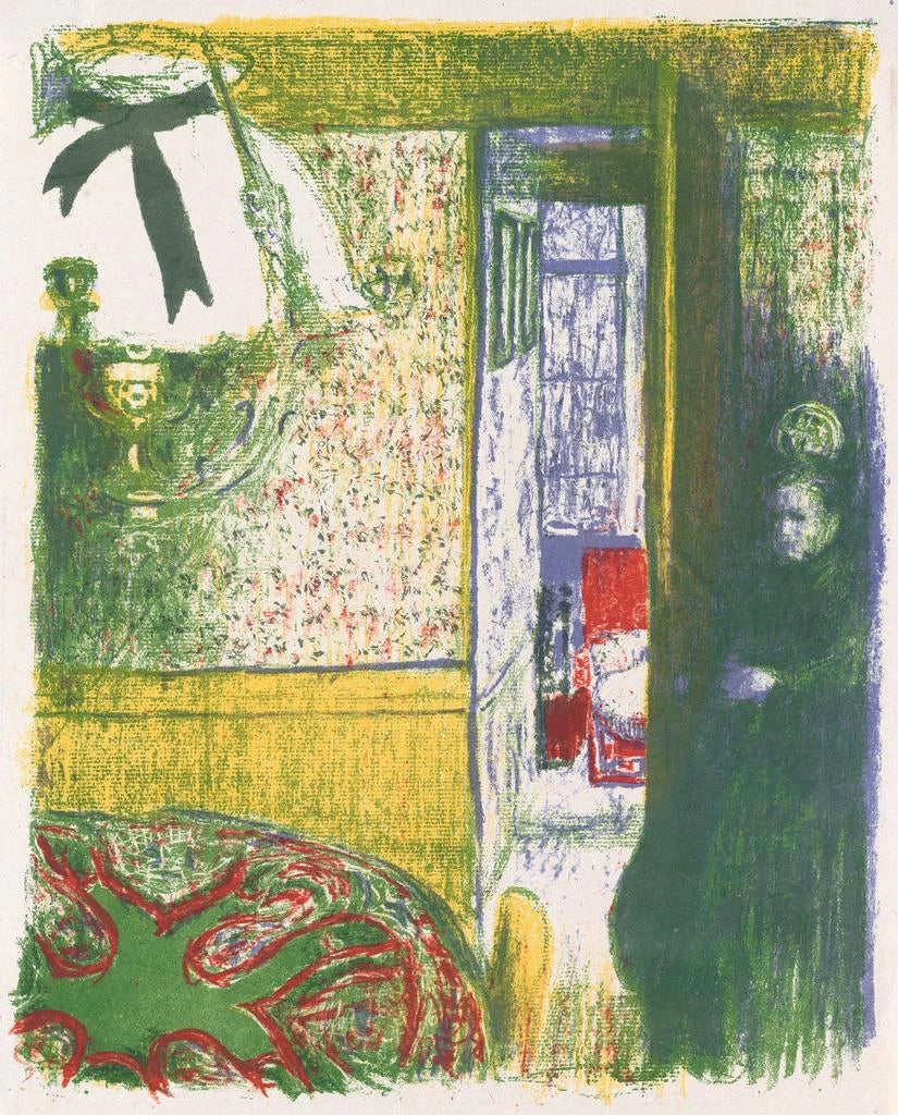 Intérieur, la suspension n’est pas seulement une représentation d’un lieu, mais une méditation sur le quotidien et la présence du temps. Vuillard y révèle sa maîtrise du rythme visuel et son sens inégalé de la composition.