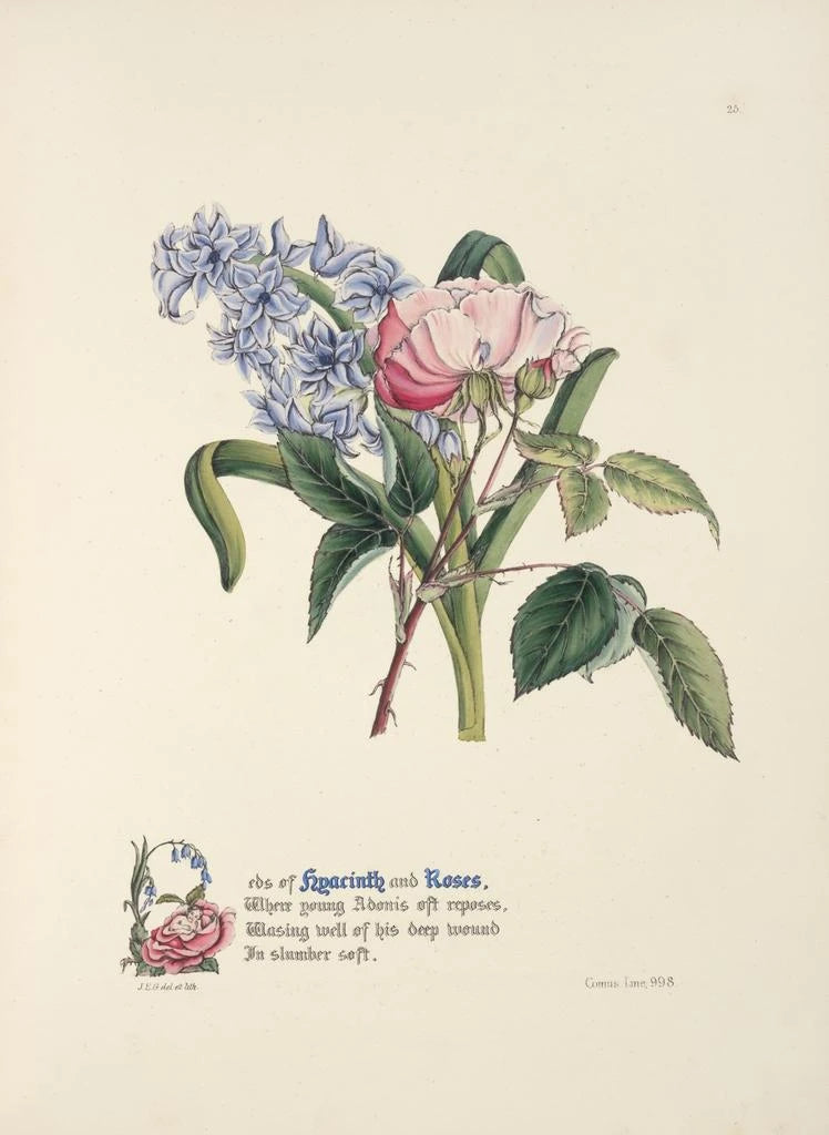 Tableau Jacinthe et rose - Jane Elizabeth Giraud | Reproduction