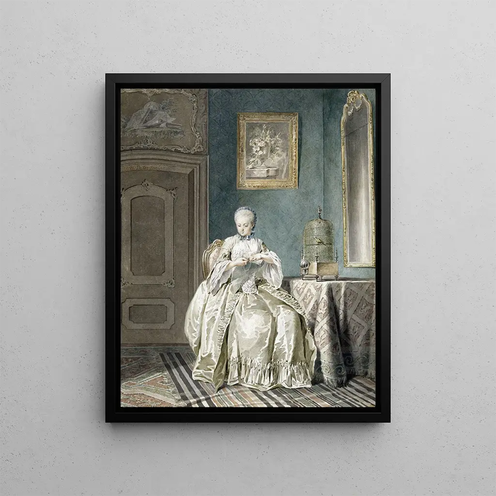 Jacobus Buys, un artiste néerlandais du XVIIIe siècle, est reconnu pour ses scènes de genre et ses portraits de la vie quotidienne. Dans 'Jeune Brodeuse', il capture la grâce et la concentration d'une jeune fille au travail, utilisant une lumière douce pour mettre en valeur les détails du tissu et les expressions délicates du visage. Cette œuvre dénote une sensibilité particulière à la beauté des gestes quotidiens, rendant hommage à la vie domestique. Le style de Buys, à la fois réaliste et poétique, trouve sa place dans les intérieurs modernes, ajoutant une touche d'humanité et de chaleur. Découvrez la reproduction de cette œuvre sur Artem Legrand.