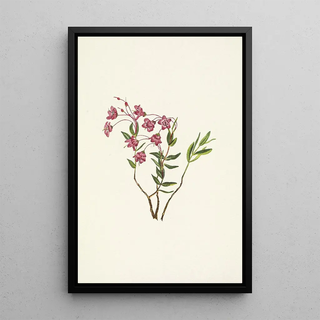 La reproduction Kalmia des montagnes Rocheuses, réalisée par Mary Vaux Walcott, nous plonge dans un univers floral d'une beauté saisissante. Cette œuvre met en avant la délicatesse des fleurs de Kalmia microphylla, avec des teintes allant du rose pâle au violet profond. La technique de l'aquarelle, utilisée par l'artiste, confère une légèreté à la composition, tandis que les détails minutieux des pétales et des feuilles capturent l'essence même de cette plante emblématique des montagnes Rocheuses. L'atmosphère qui se dégage de ce tableau évoque une promenade en pleine nature, où chaque fleur semble vibrer au rythme du vent.