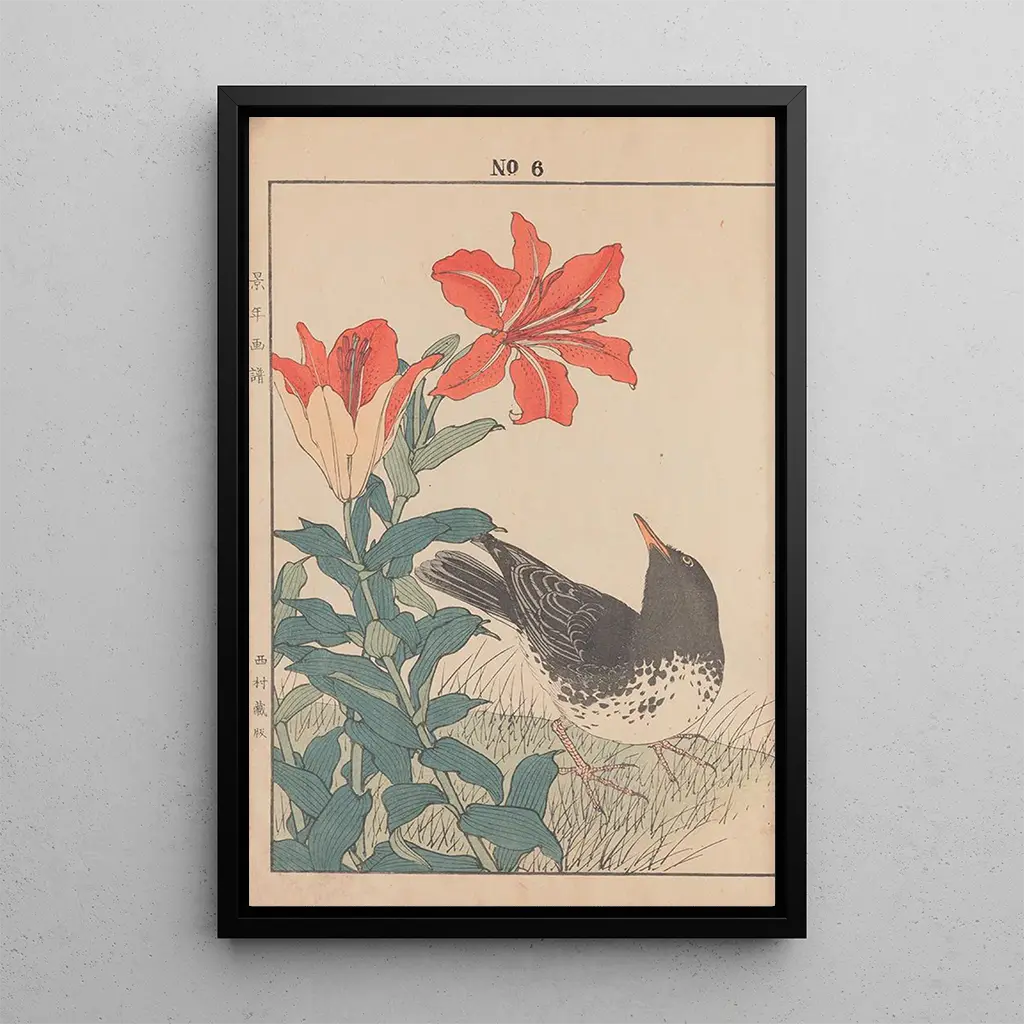 Keinen kach gafu Pl089 : une harmonie de la nature et de l'art La reproduction de l'œuvre Keinen kach gafu Pl089 d'Imao Keinen nous transporte dans un monde où la nature s'épanouit sous les coups de pinceau délicats de l'artiste. Les couleurs vibrantes et les détails minutieux des fleurs et des oiseaux créent une atmosphère sereine et apaisante. Chaque élément de la composition semble vivre en parfaite symbiose, invitant le spectateur à une contemplation profonde. La technique de l'estampe sur papier, typique de l'ukiyo-e, permet de capturer la beauté éphémère de la nature, tout en offrant une sensation de légèreté et de fluidité. Imao Keinen : un maître de l'ukiyo-e à l'apogée de son art Imao Keinen, actif à la fin du XIXe siècle, est reconnu comme l'un des maîtres de l'ukiyo-e, un mouvement artistique japonais qui célèbre la beauté du monde flottant. Influencé par les traditions de l'art japonais et par les courants occidentaux, Keinen a su allier ces deux mondes pour créer des œuvres d'une grande finesse. Sa carrière s'étend sur plusieurs décennies, durant lesquelles il a produit de nombreuses estampes, dont certaines sont devenues emblématiques. L'œuvre Keinen kach gafu Pl089 illustre parfaitement son talent et son engagement envers la représentation de la nature, reflet d'une époque où l'art japonais connaissait un renouveau. Une acquisition décorative aux multiples atouts La reproduction du tableau Keinen kach gafu Pl089 est une pièce décorative idéale pour enrichir votre intérieur, que ce soit dans un salon, un bureau ou une chambre. Sa qualité d'impression et sa fidélité aux détails originaux en font un choix attrayant pour les amateurs d'art et les passionnés de culture japonaise. En intégrant cette toile dans votre décoration, vous apportez une touche d'élégance et de sérénité à votre espace. De plus, son attrait esthétique et sa capacité à susciter des émotions en font un excellent sujet de conversation, transformant votre intérieur en un véritable sanctuaire de beauté.