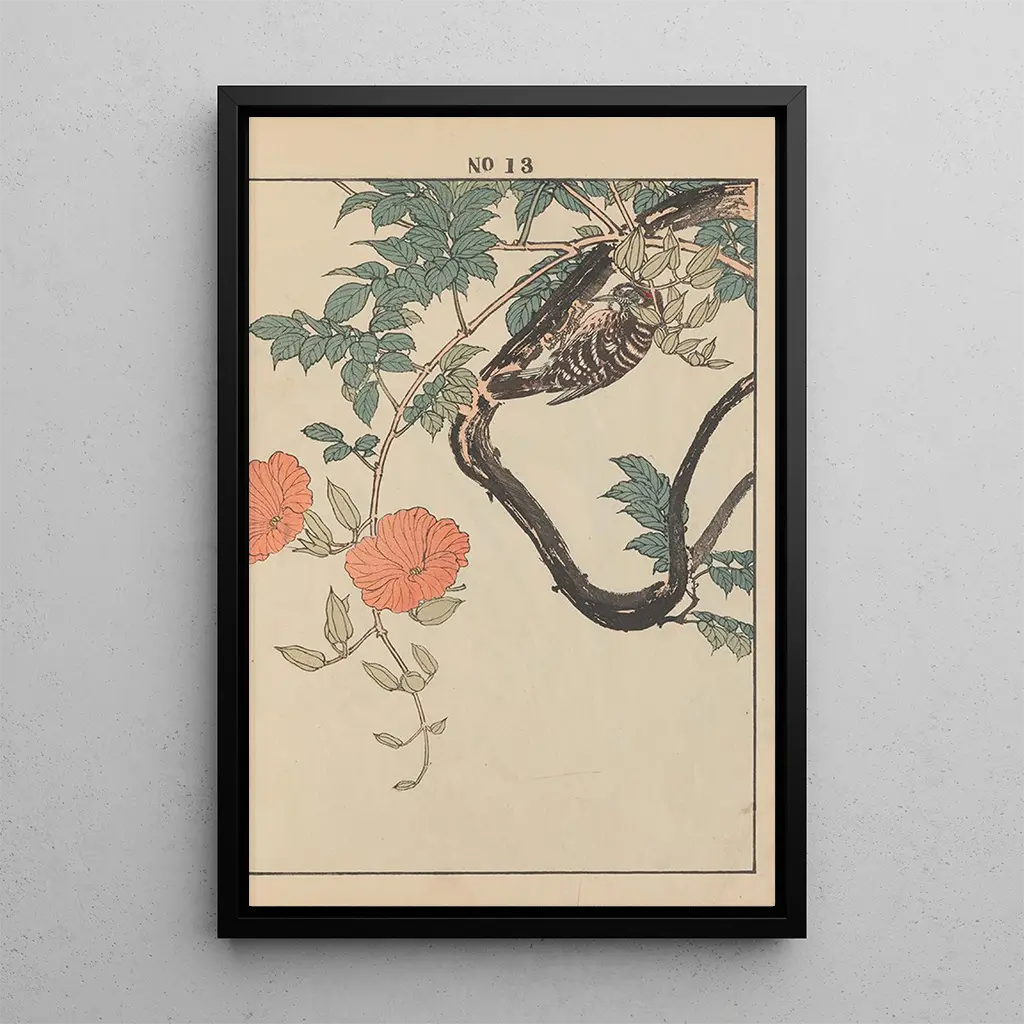 Imao Keinen, figure emblématique de l'estampe ukiyo-e, a su capturer l'essence de la nature à travers ses œuvres. Actif à la fin du XIXe siècle, il a été influencé par les traditions artistiques japonaises tout en intégrant des éléments modernes. Son travail se distingue par une attention minutieuse aux détails et une sensibilité à la beauté des fleurs et des oiseaux. Keinen a contribué à populariser l'estampe florale, faisant de lui un artiste incontournable de son époque et un précurseur dans l'art de représenter la nature avec tant de délicatesse.