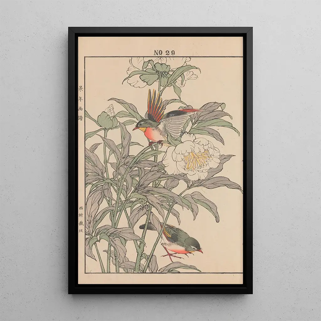 La reproduction Keinen kach gafu Pl119 nous transporte dans un jardin luxuriant, où chaque fleur semble vibrer de vie. Les teintes pastel, délicates et nuancées, créent une atmosphère douce et rêveuse, invitant à l'évasion. La technique de l'estampe, avec ses lignes fluides et ses détails minutieux, met en valeur la beauté des motifs floraux, témoignant de l'habileté de l'artiste. Cette œuvre, véritable poème visuel, célèbre le cycle de la vie et la beauté éphémère de la nature, offrant une expérience contemplative à ceux qui la regardent.